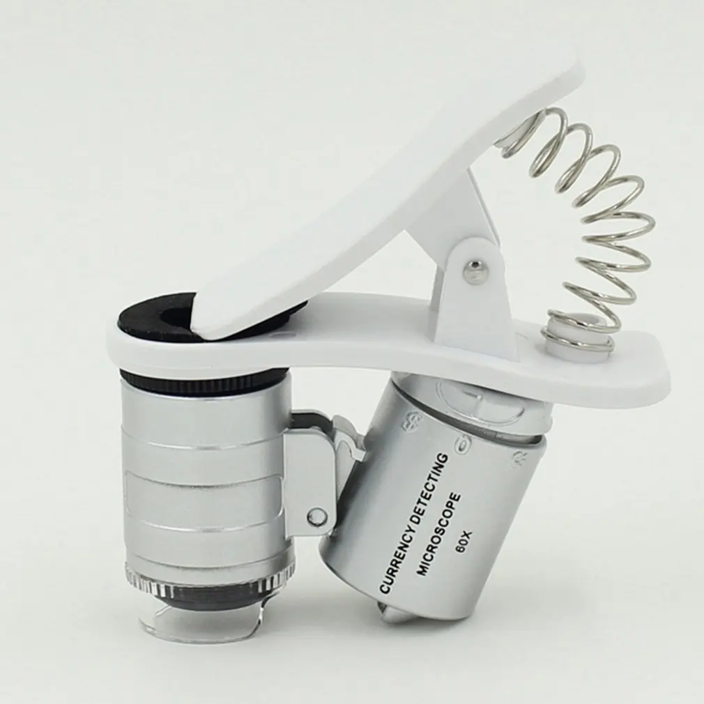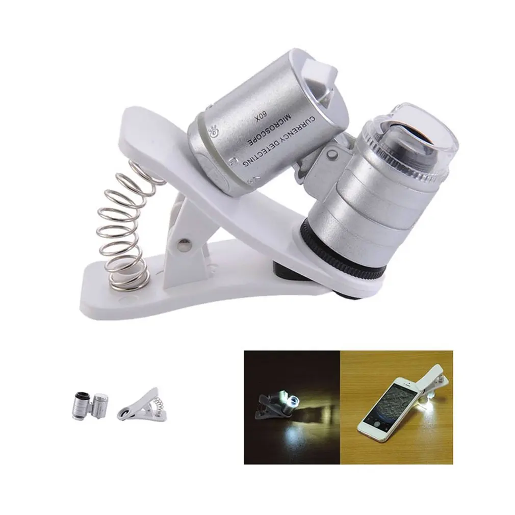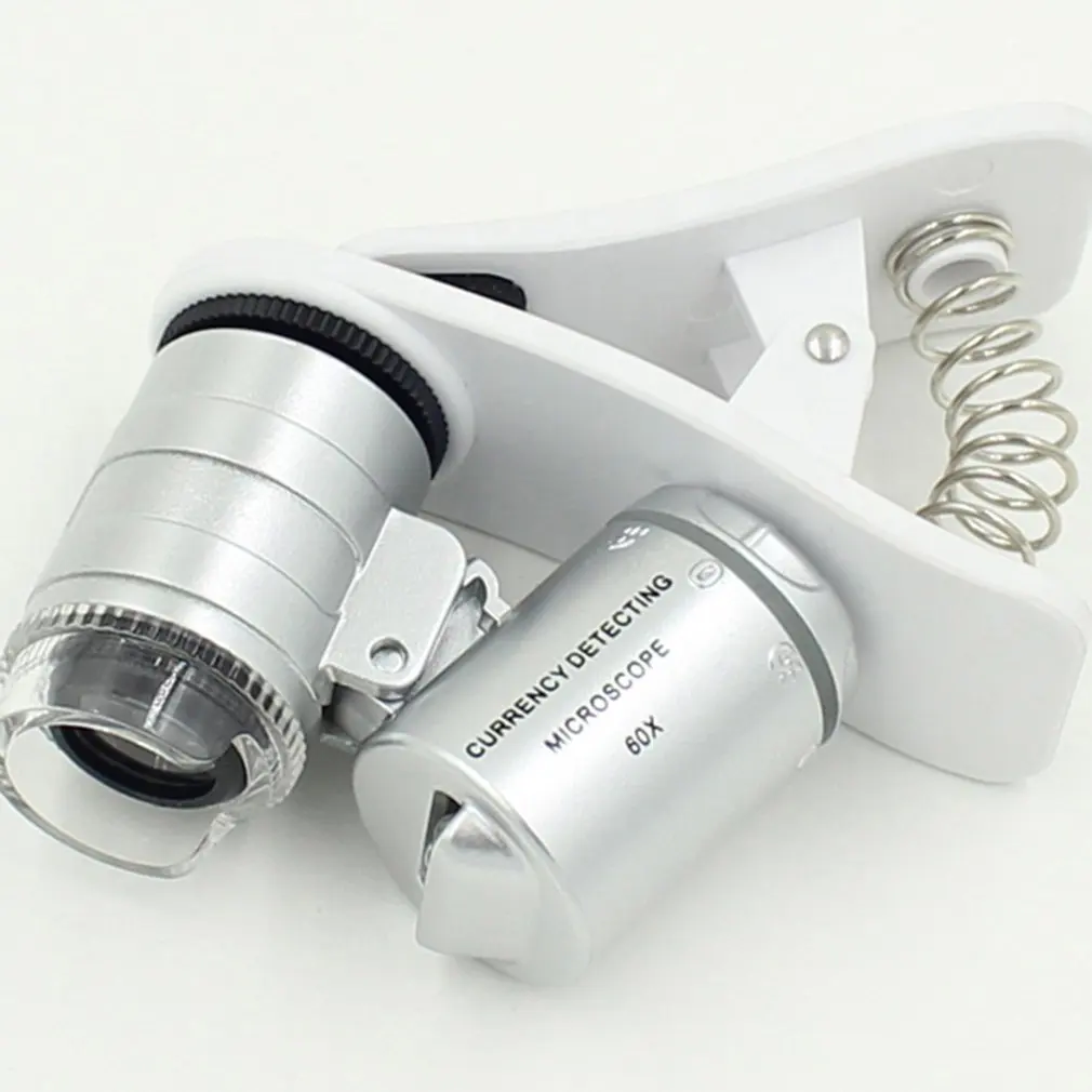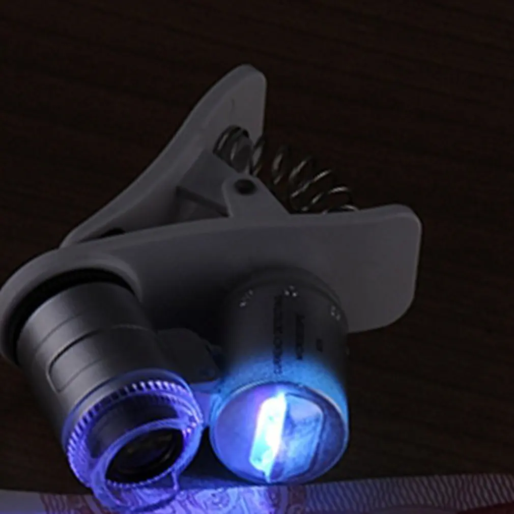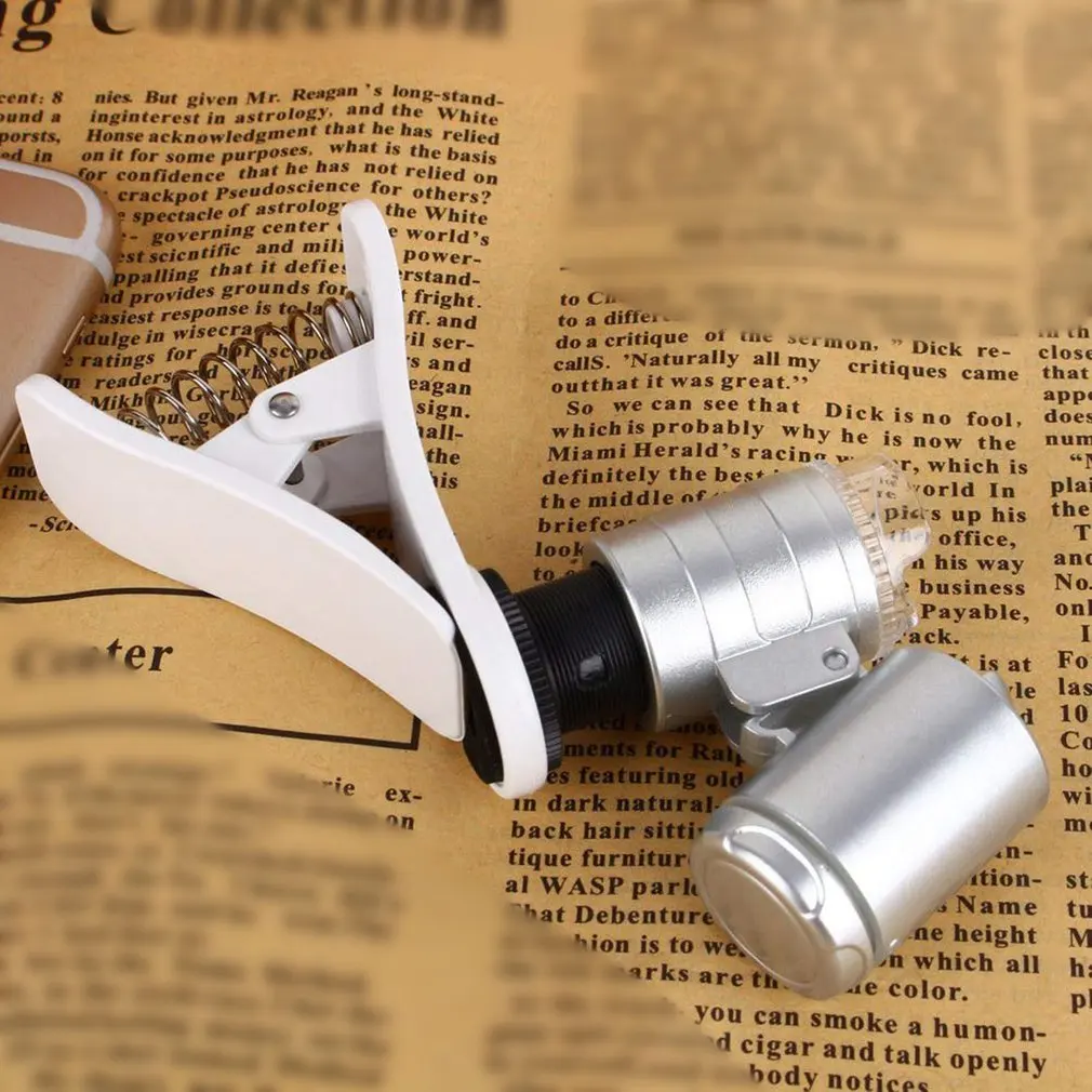 Comprar Microscopio de bolsillo con luz UV para teléfono móvil, lupa LED con Clip para teléfono móvil, 60/100X
