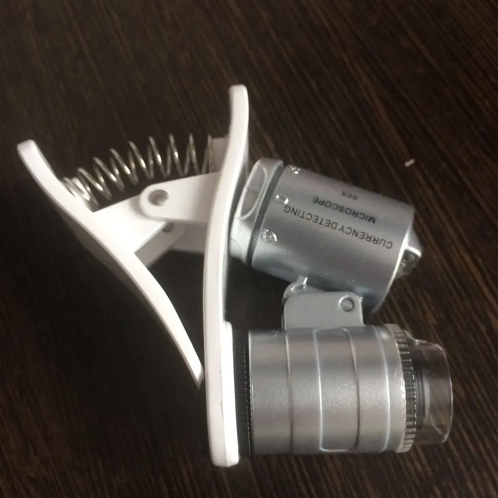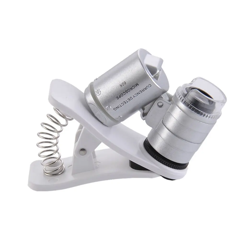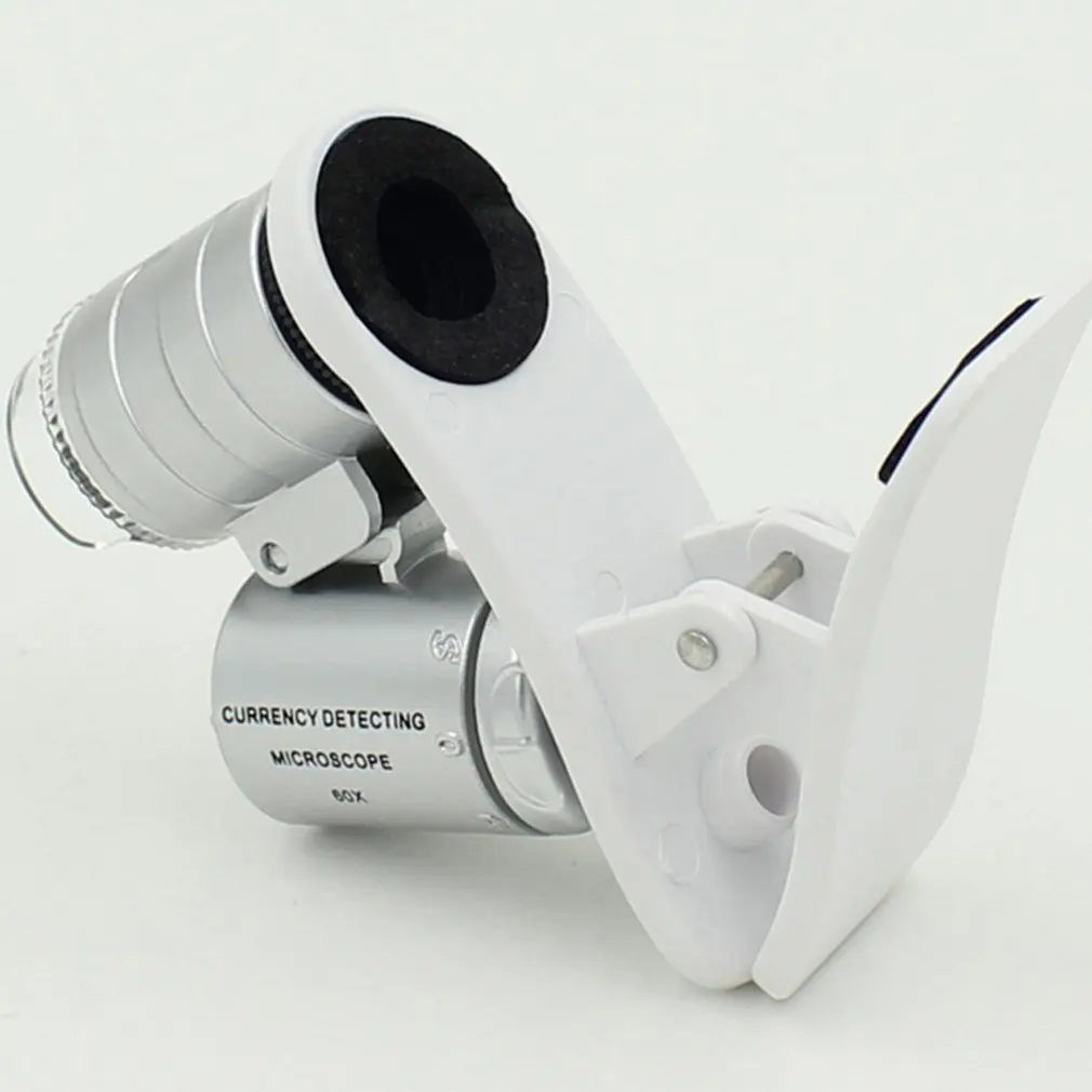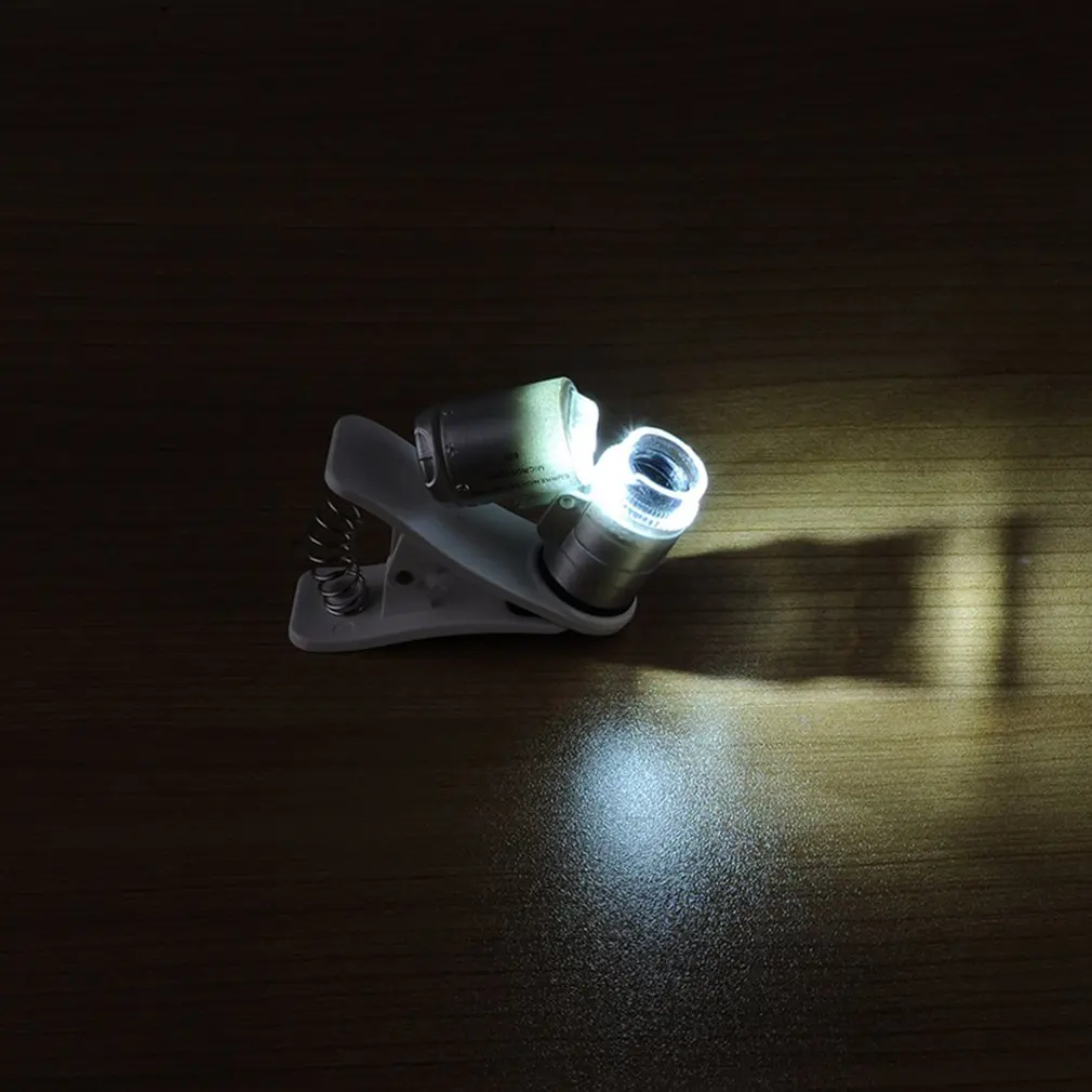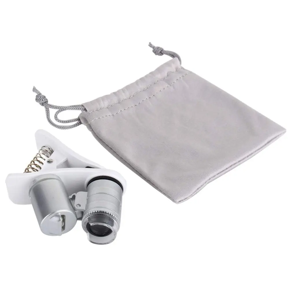 Comprar Microscopio de bolsillo con luz UV para teléfono móvil, lupa LED con Clip para teléfono móvil, 60/100X