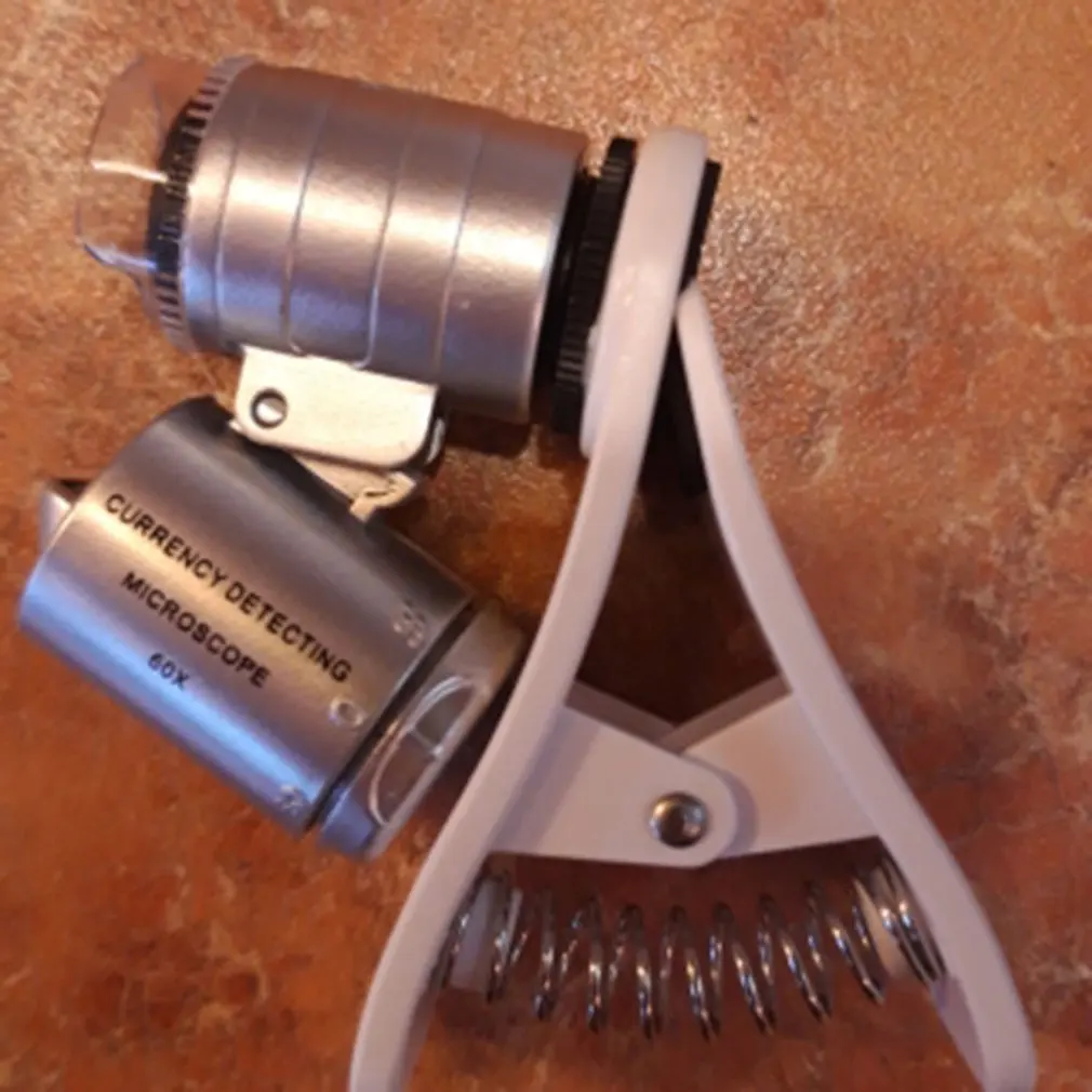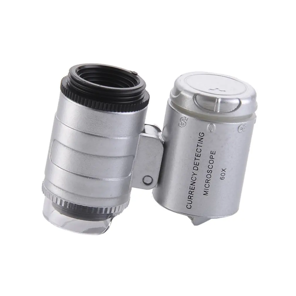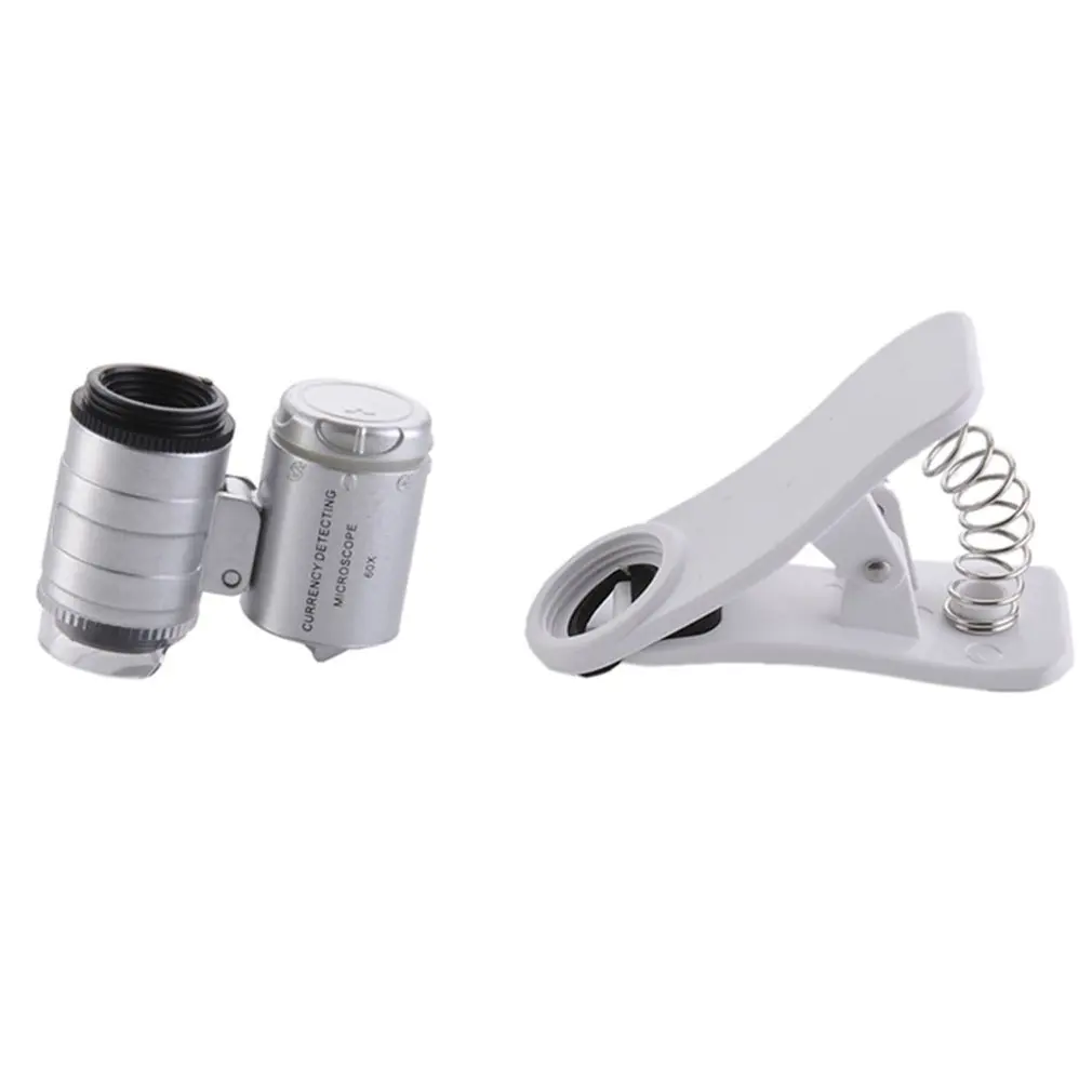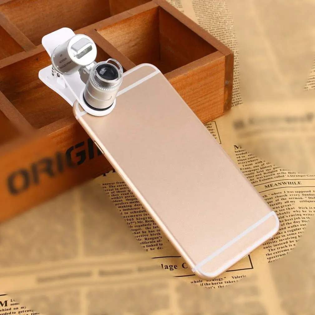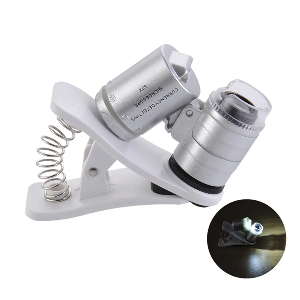 Comprar Microscopio de bolsillo con luz UV para teléfono móvil, lupa LED con Clip para teléfono móvil, 60/100X