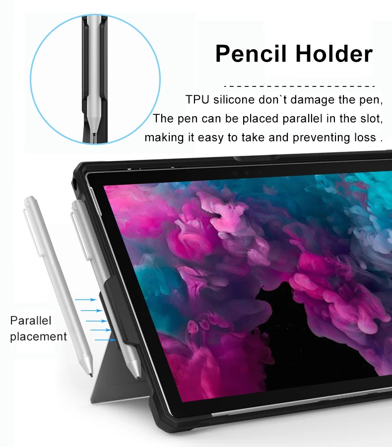 Comprar Para Microsoft Surface Pro 11 10 9 8 7 6 5 LTE 7 + Plus Surface GO 1 2 3 funda protectora trasera resistente con correa para portalápices