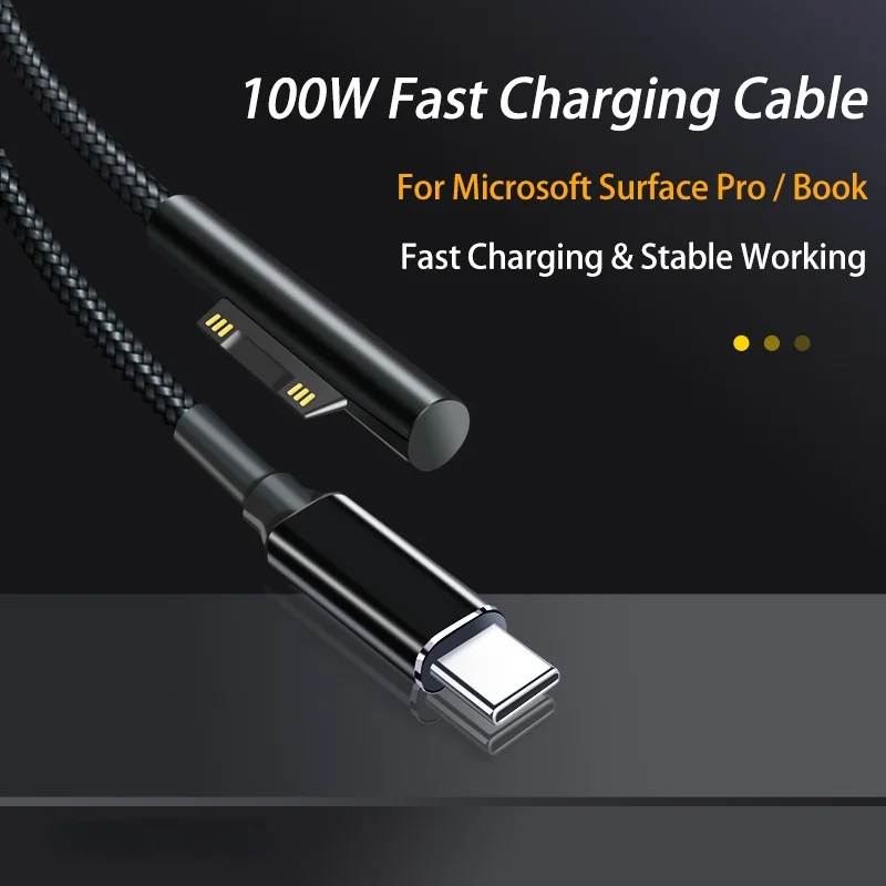 Para Microsoft Surface Pro 4 6 5 3 go cargador fuente de alimentación tipo C DC PD Cable de carga rápida 100W 5A para Surface Pro 3/4/5/6/GO