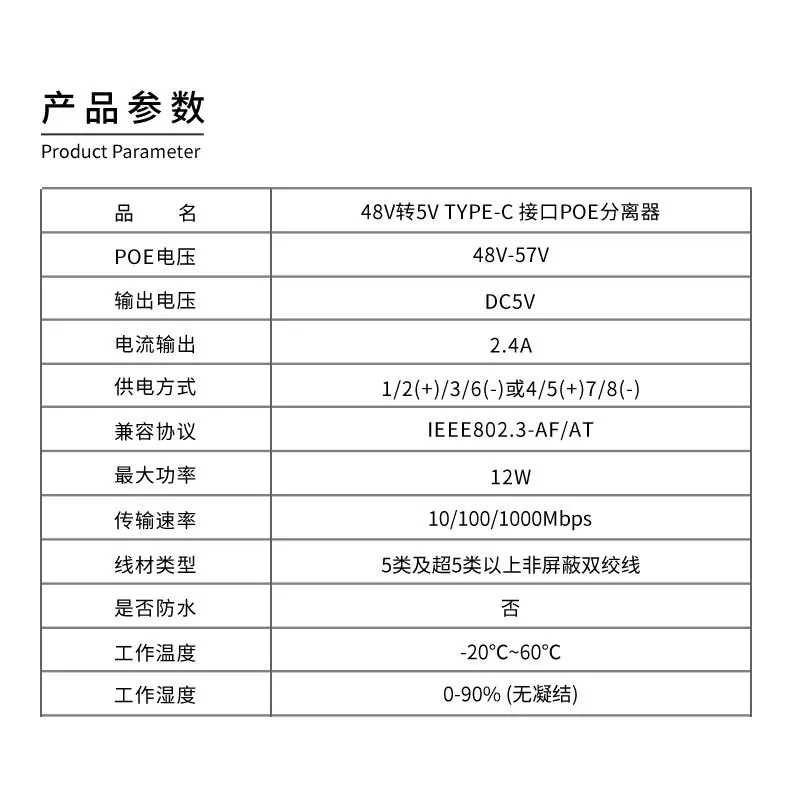 Gigabit DC 48V a 12V:Tipo-C 48V a 5V: