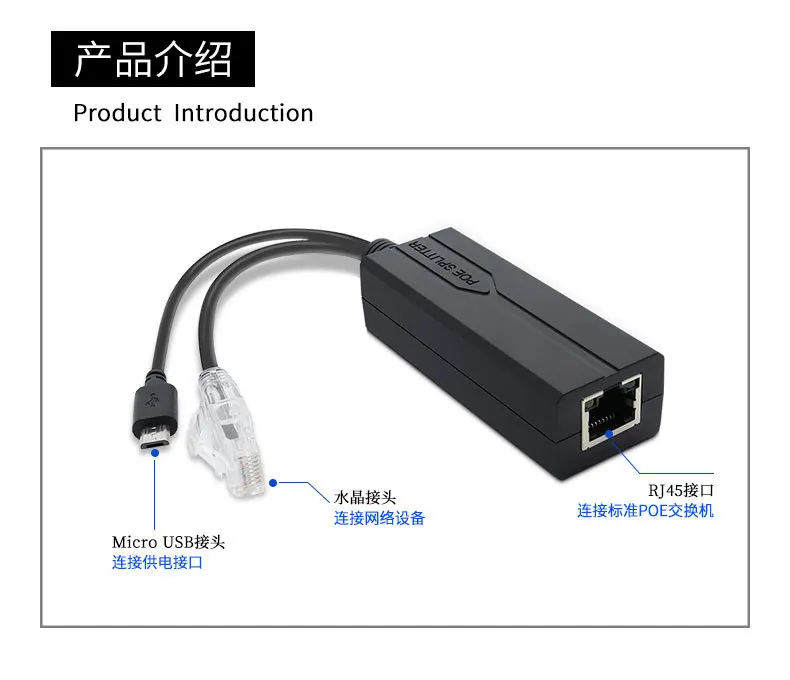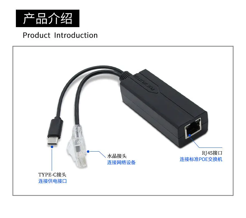 Comprar MicroUSB/DC48V a 12V/tipo-c Gigabit POE Splitter, módulo de fuente de alimentación estándar de 48V a 5V, Cable de red a Android POE Splitter