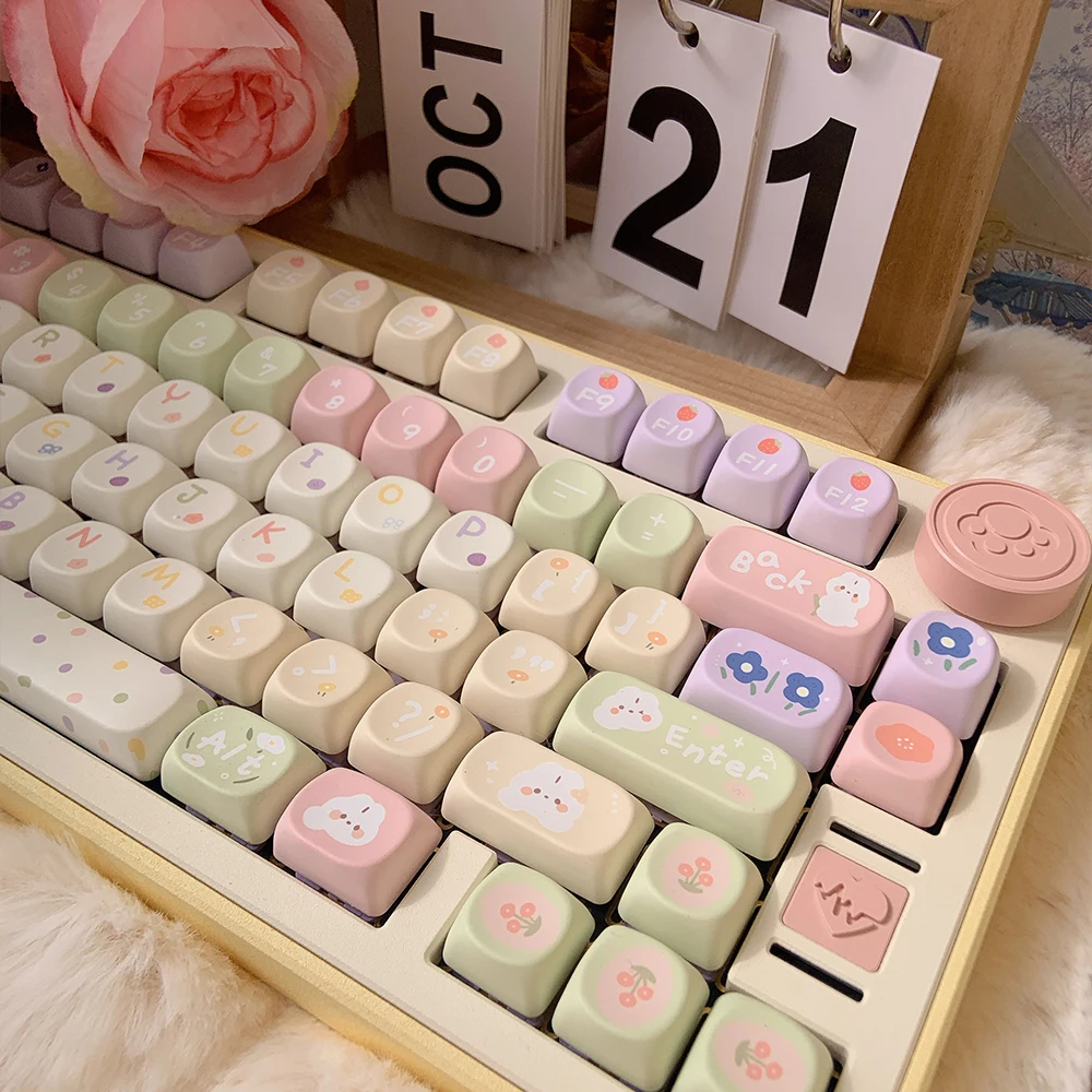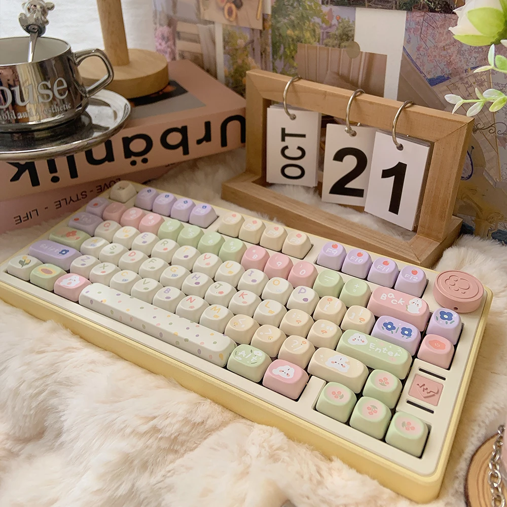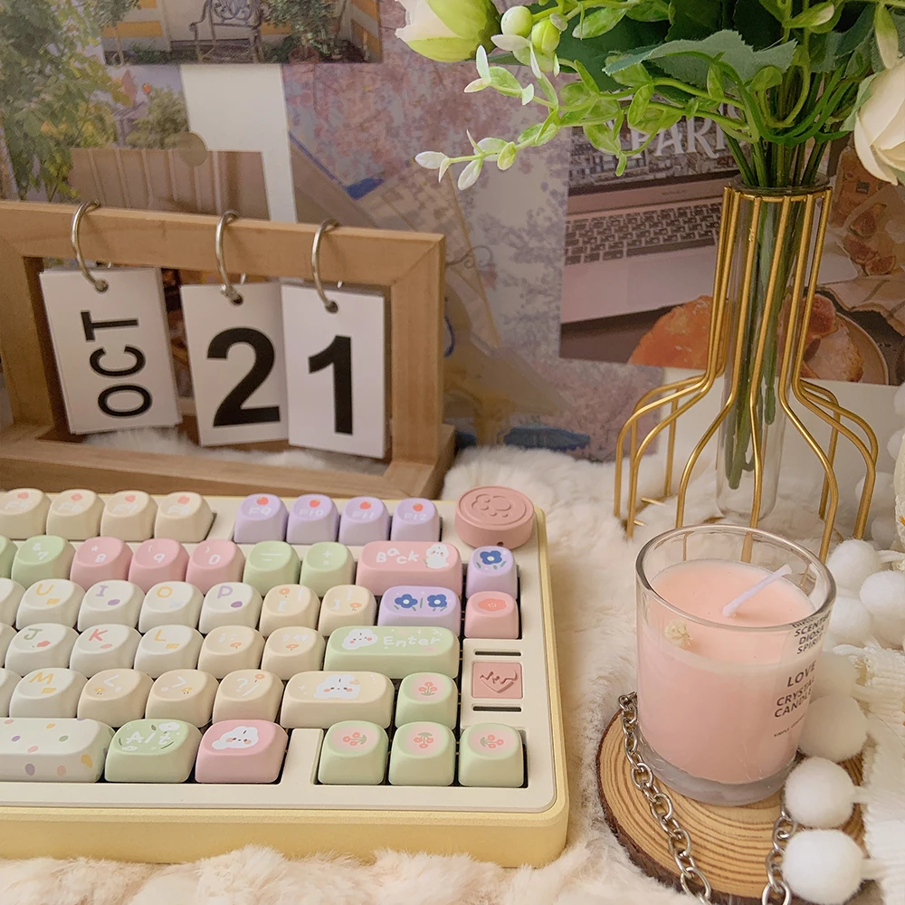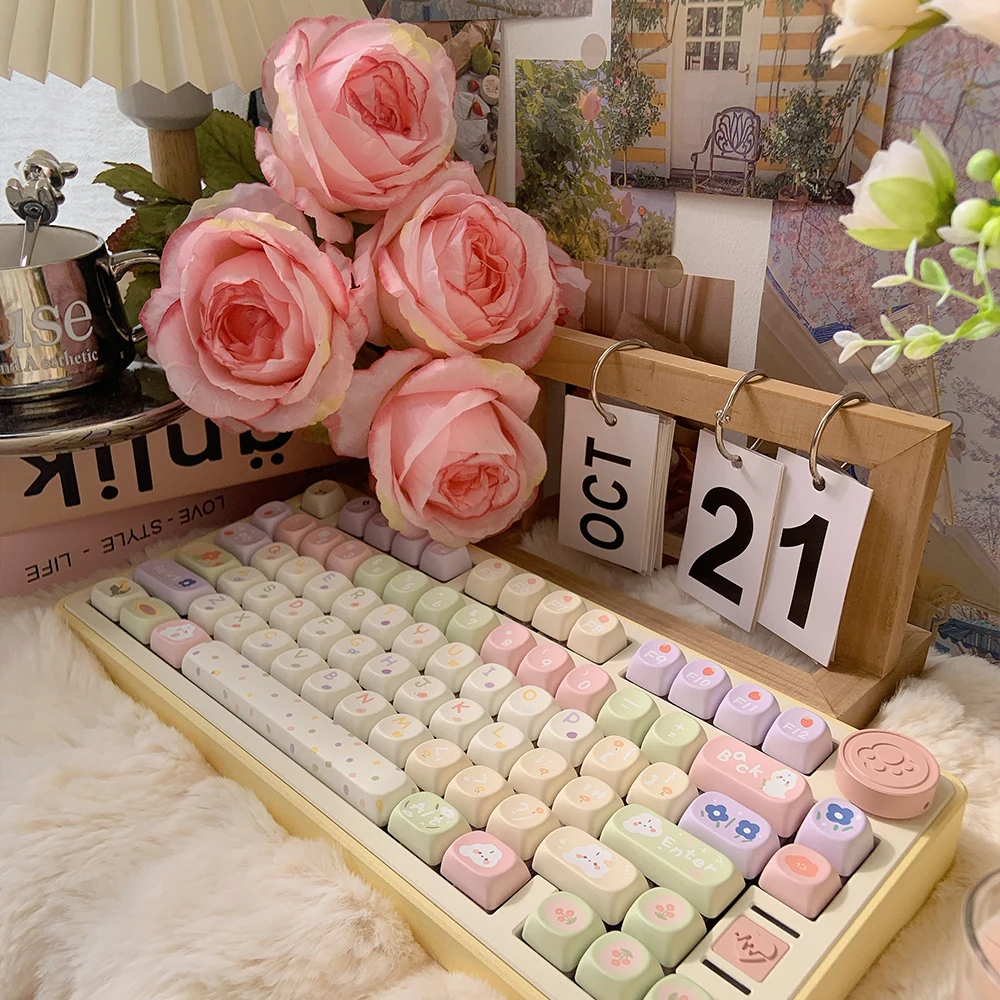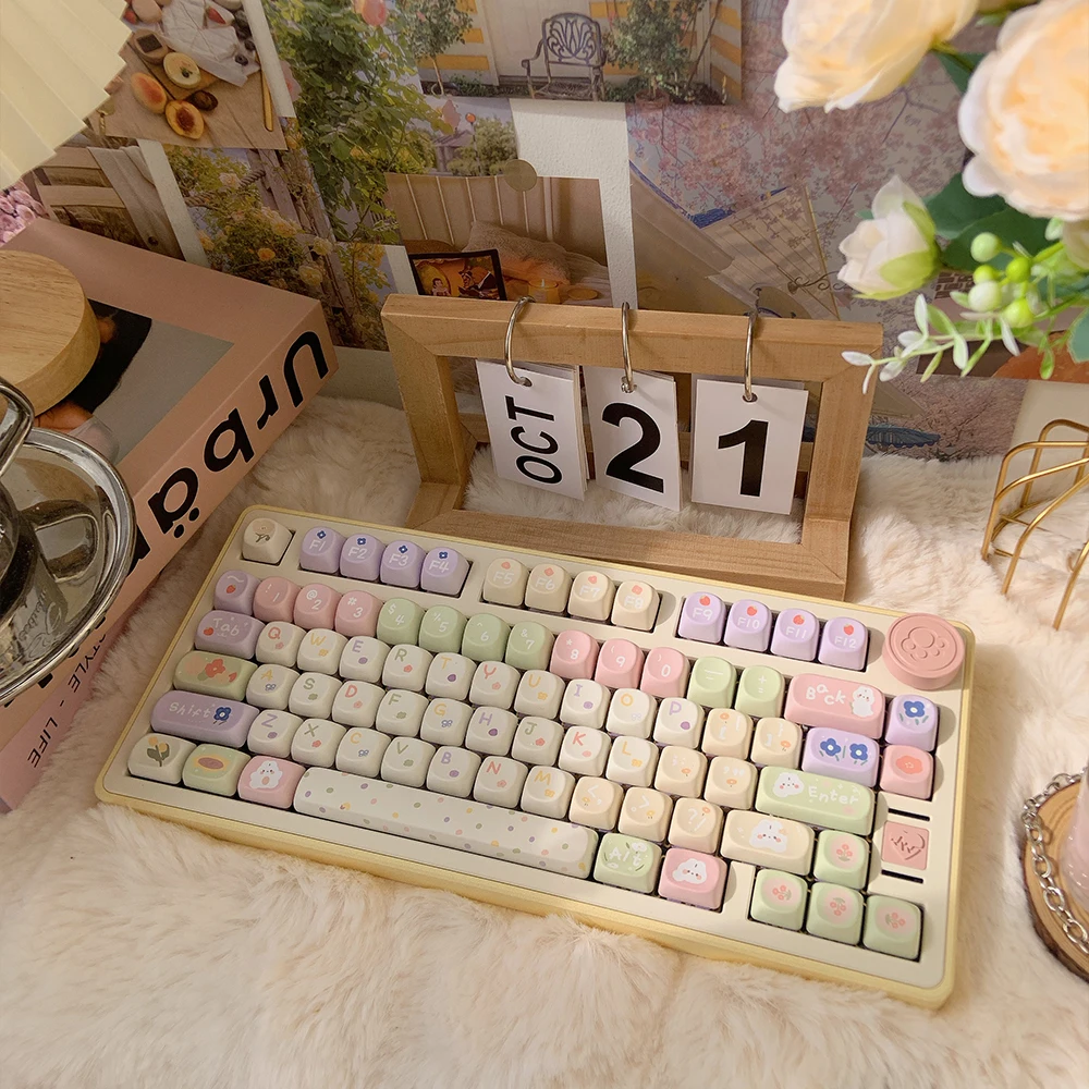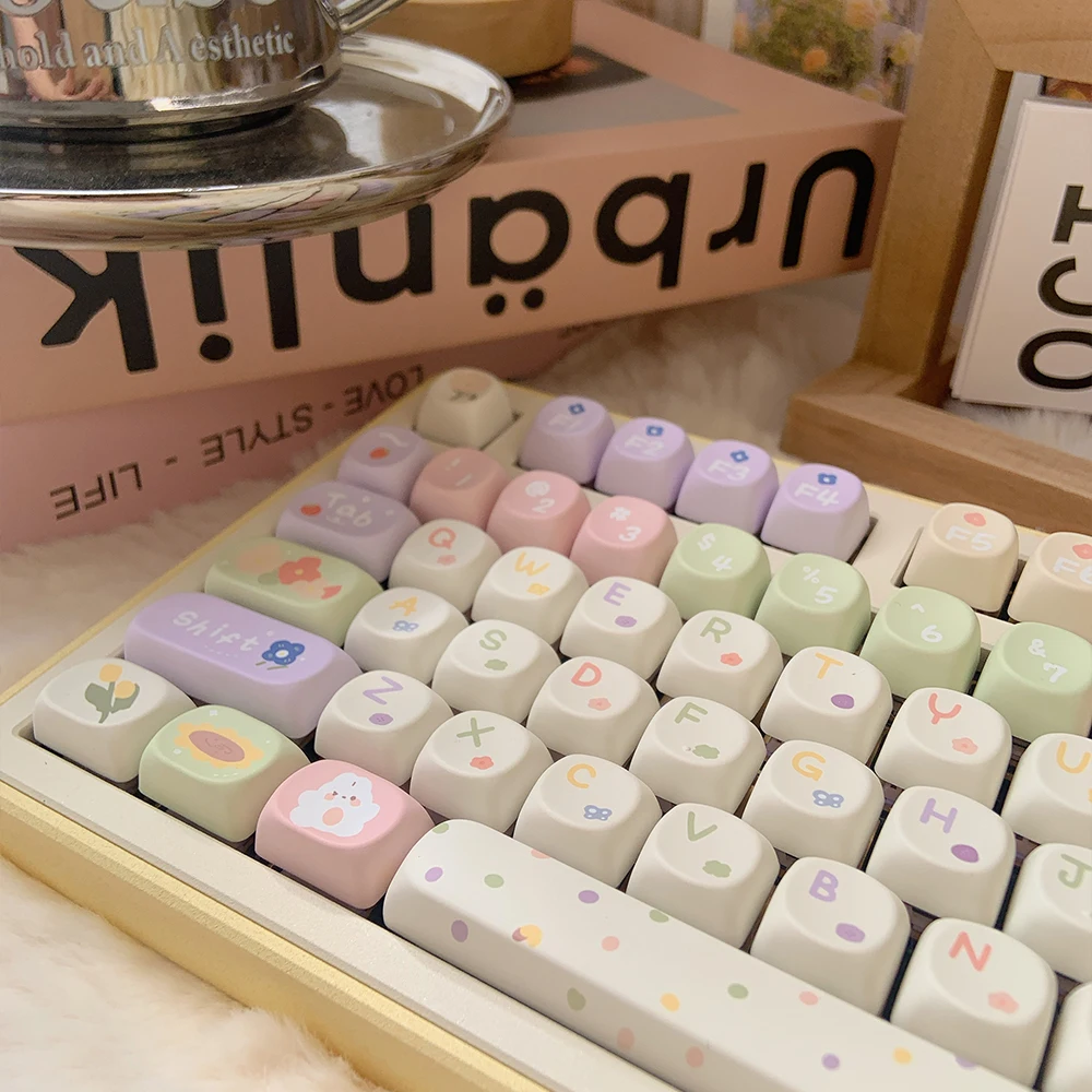 MiFunny Pastel Flower Keycap MOA/SOA Profile Keycap para GMK67 Teclado mecánico Keycaps Kawaii Custom Keycaps Cute Keycaps