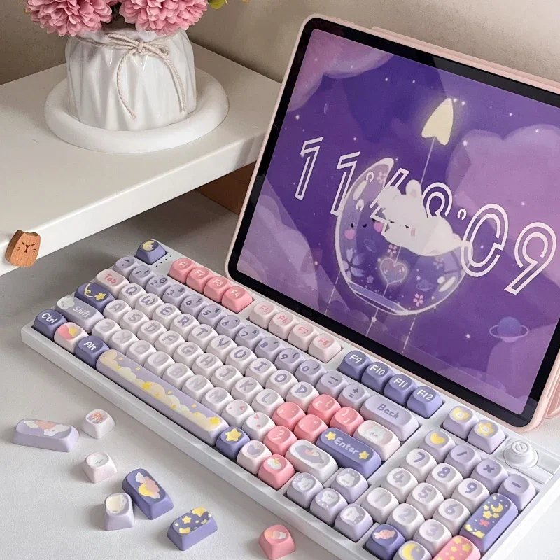 Comprar MiFuny-Juego de teclas con temática Moonlight Rabbit, tapa de teclado PBT, perfil MOA/SOA, Anime, accesorios de teclado mecánico, regalo
