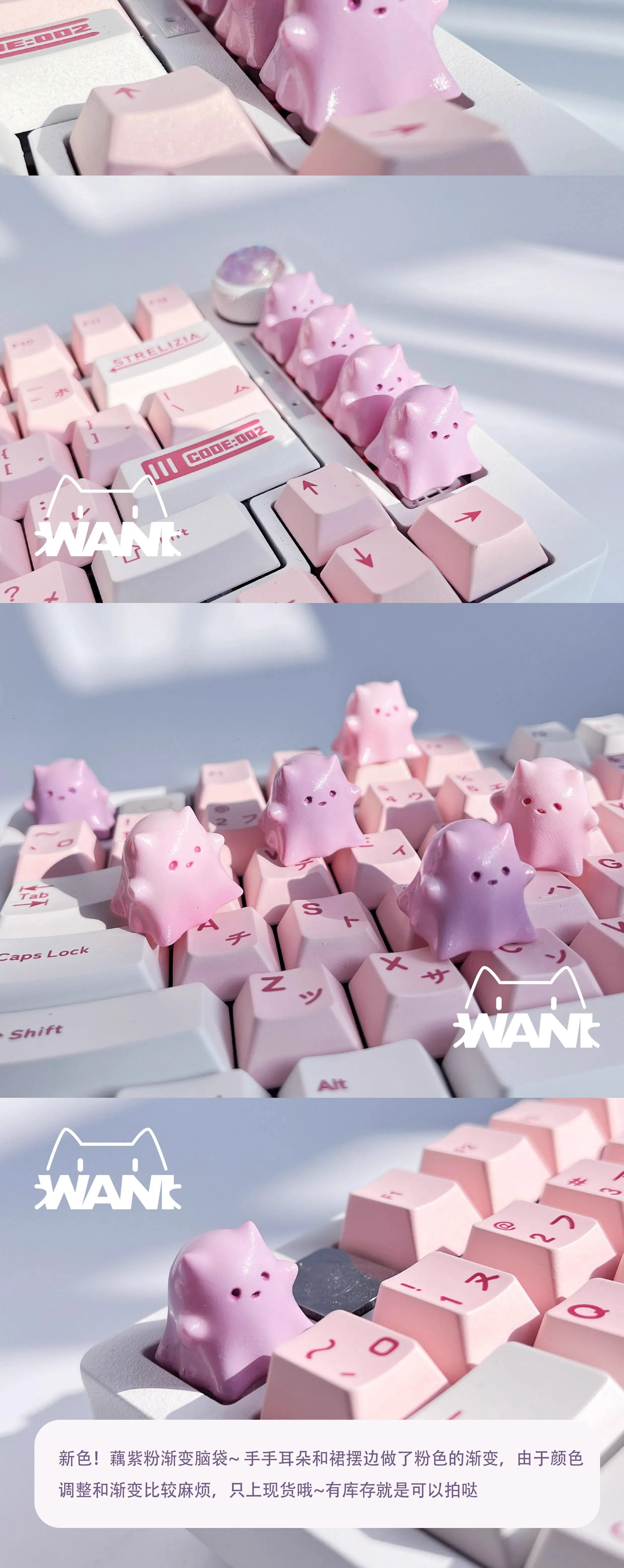 MiFuny Ghost Cat Kecap resina degradado Rosa lindas tapas de teclado teclas personalizadas para accesorios de teclado mecánico regalo para niñas
