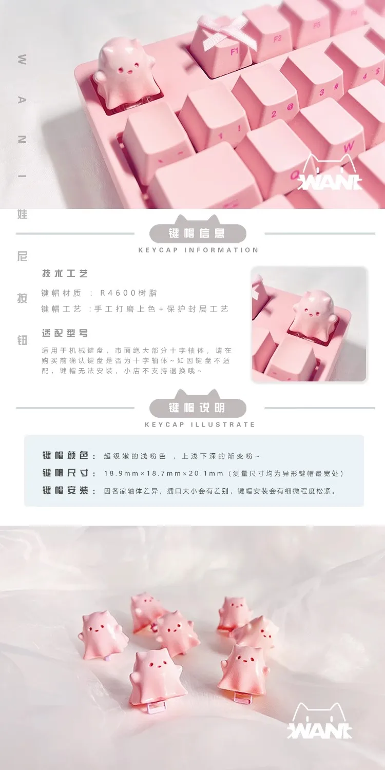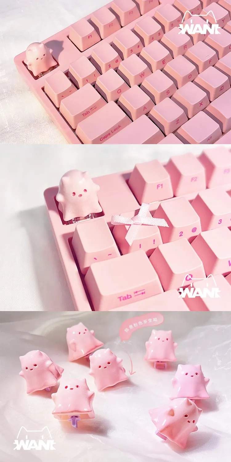 Comprar MiFuny-Kecap de gato fantasma, tapas de teclado de resina Rosa degradado, bonitas, personalizadas, accesorios de teclado mecánico, regalo para niñas