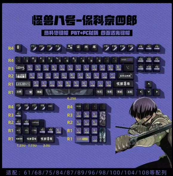 MiFuny Monster 8 Keycaps Transparent Pudding PBT Keycap OEM Profile Key Caps for 80/x100 Mechanical Keyboard Gaming Accessories