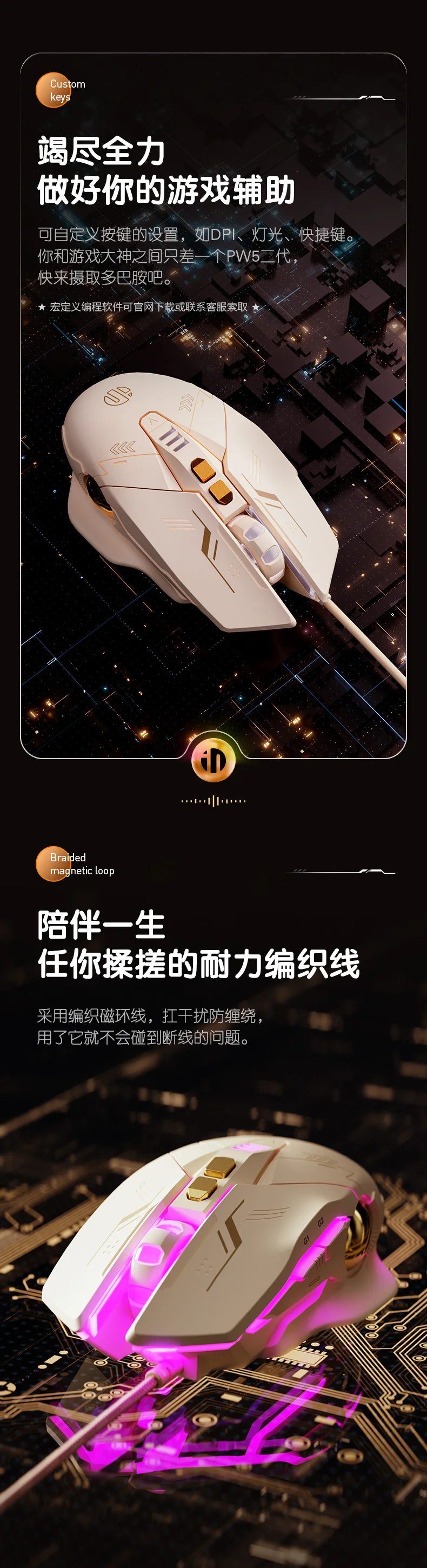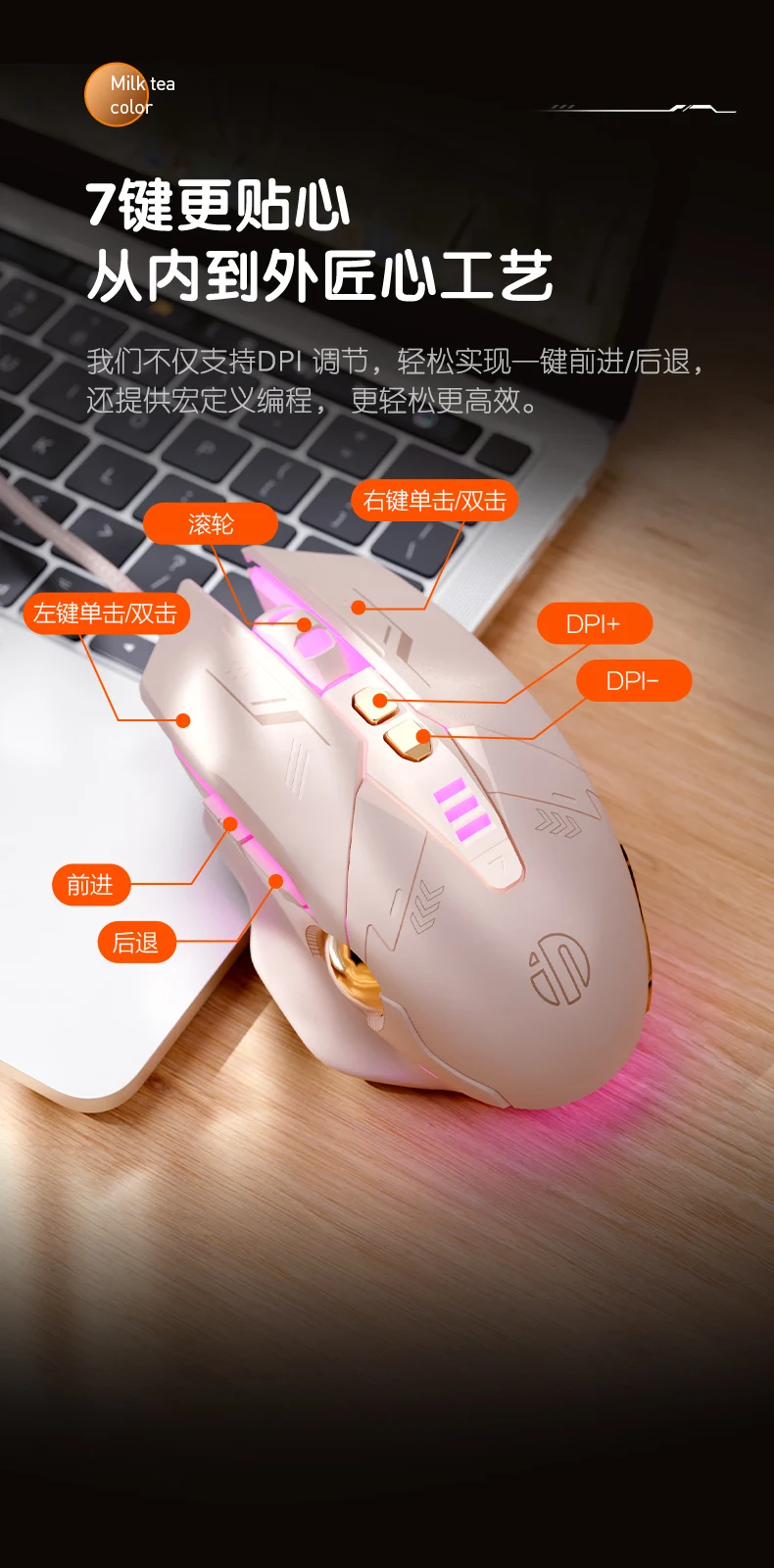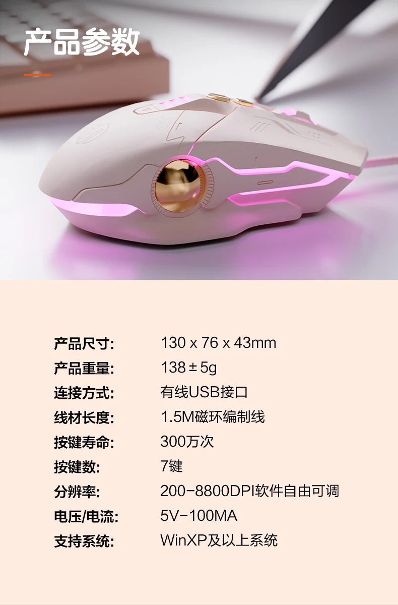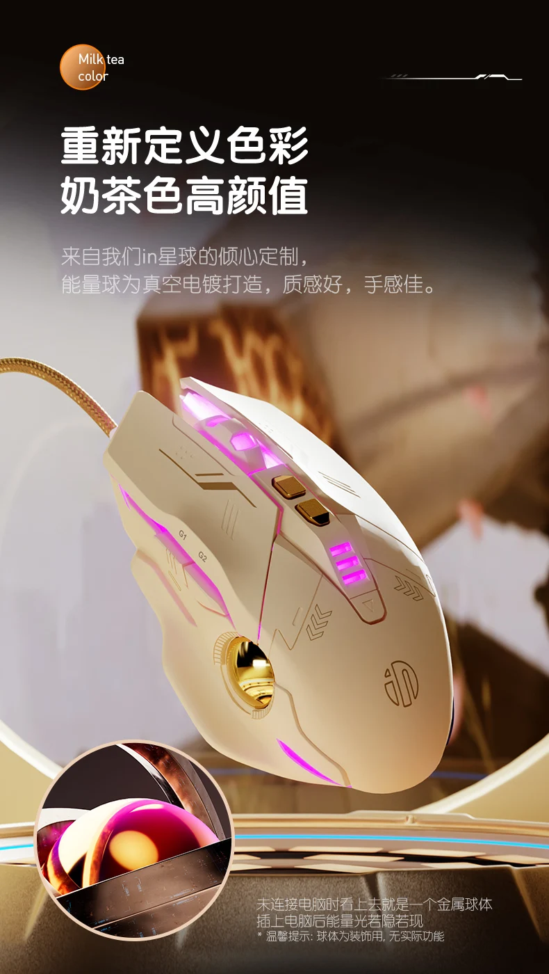MiFuny ratón blanco de té con leche Infineon W8 ergonómico silencioso con cable ratón para juegos de deportes electrónicos de oficina en casa para ordenador portátil de escritorio