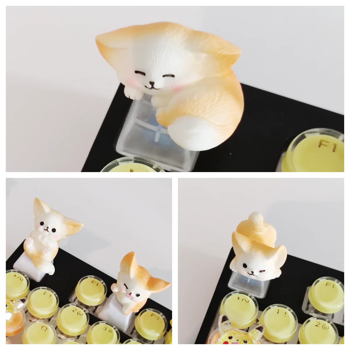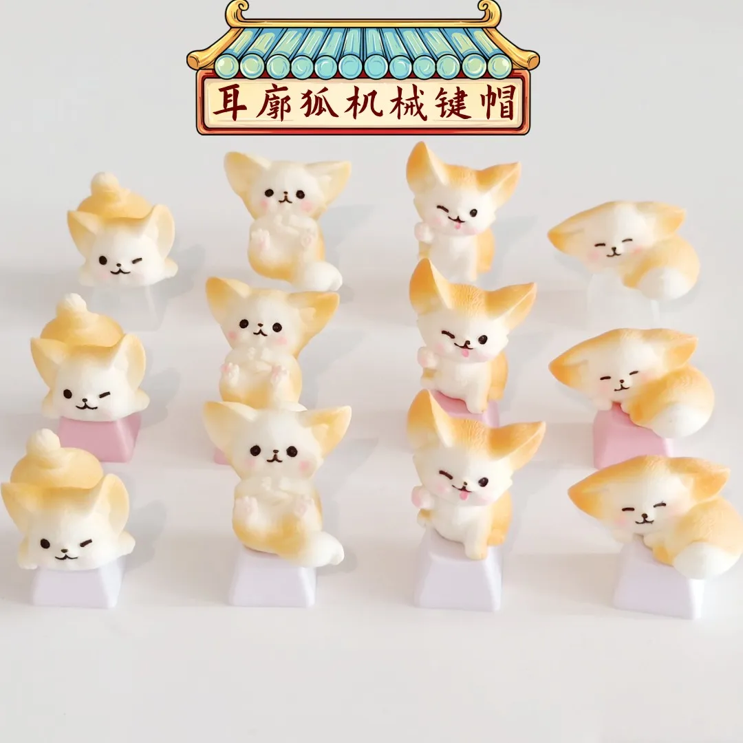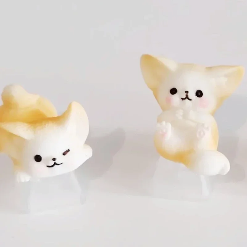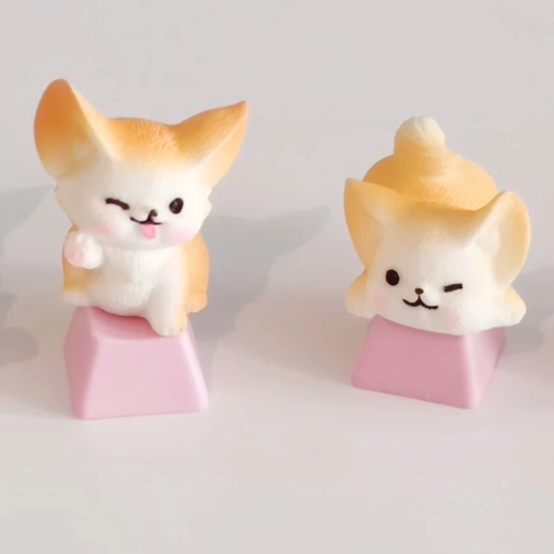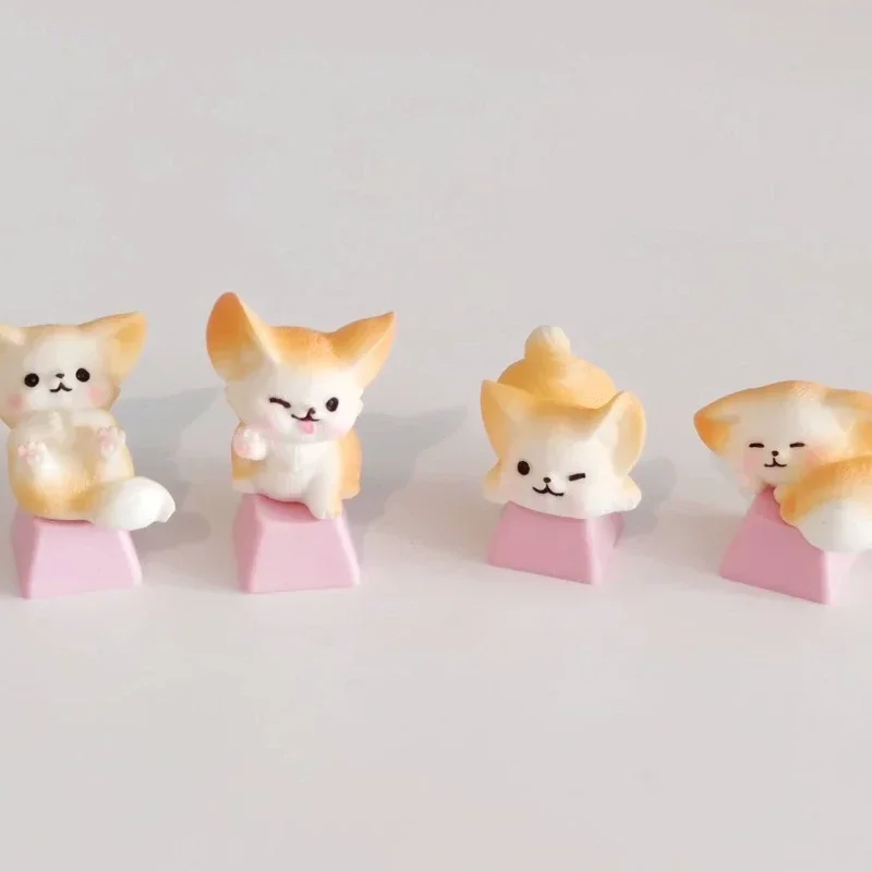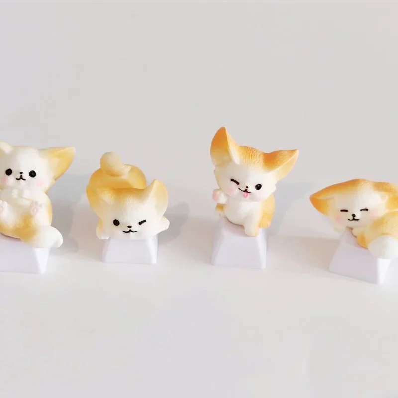 Comprar MiFuny-Tapas de teclado de resina 3D hechas a mano, dibujos animados artesanales, accesorios de teclado mecánico, lindo Fennec Fox
