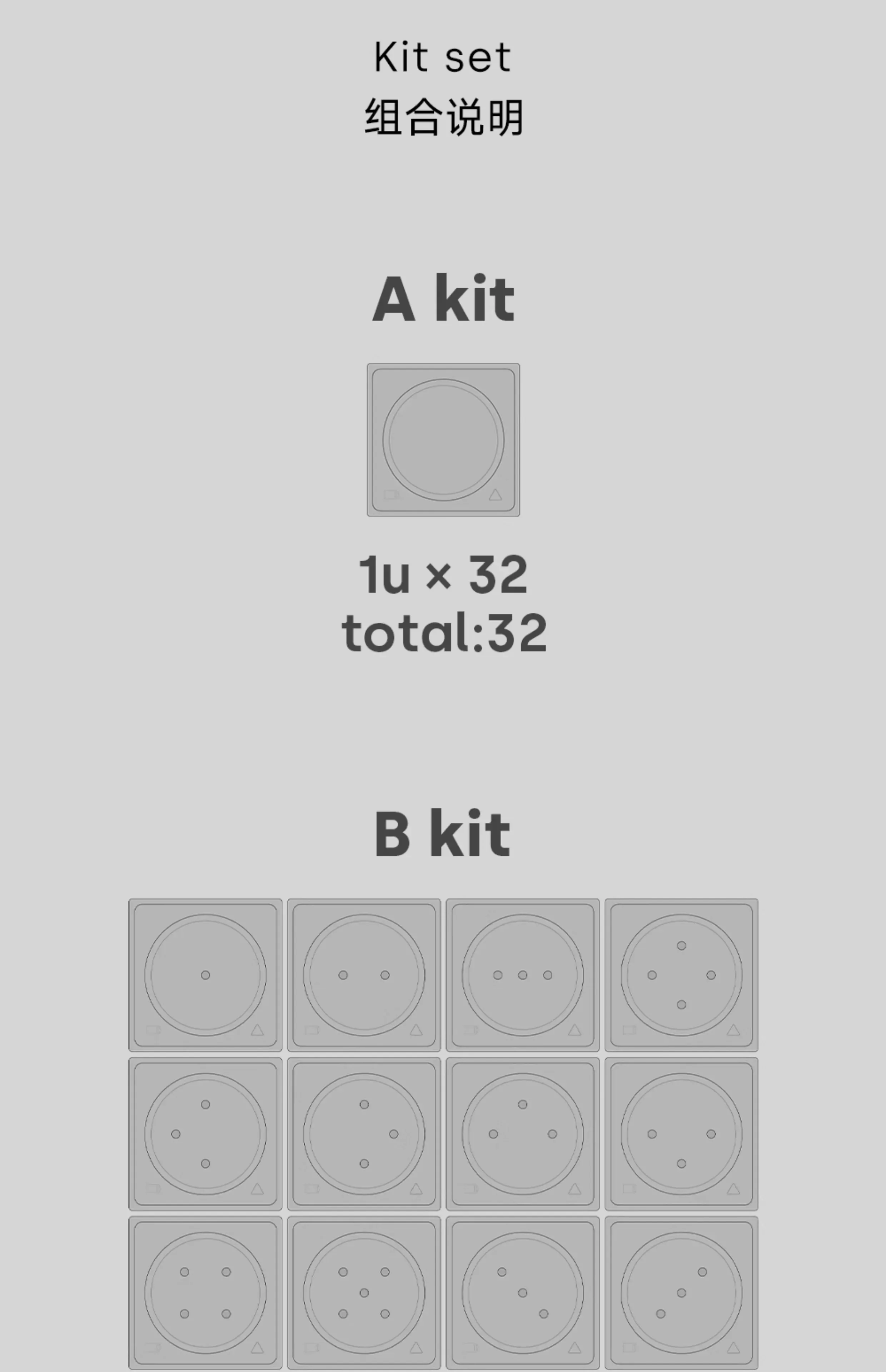 El paquete incluye: Kit A (1Ux32)B (1ux 12+ 2ux 2) Kit mod (33 teclas)
