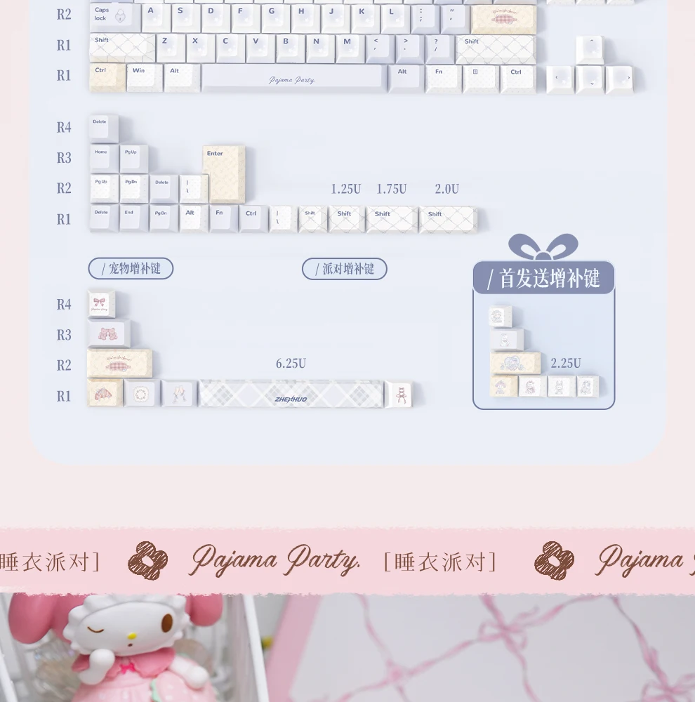 Name:Pajama Party theme keycapsKeycap Material:pbt