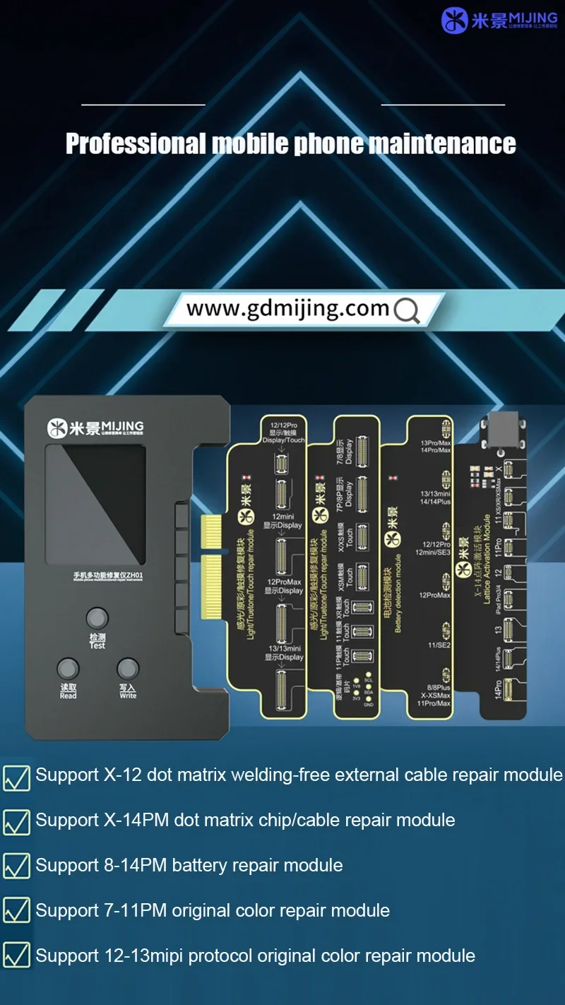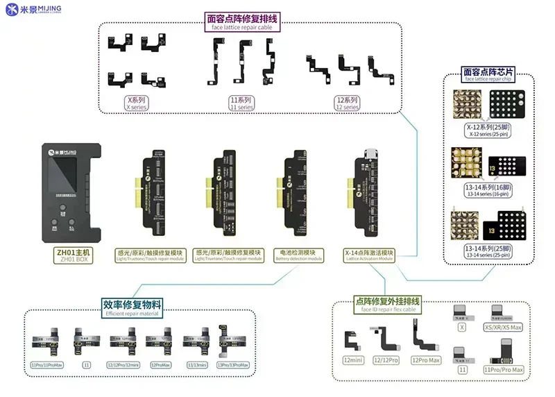 MIJING ZH01 Cable de matriz de puntos de reparación de identificación facial, proyector de puntos, cambio de datos de batería flexible para IPhone X, XR, XS, 11, 12, 13, 14 Pro, programador