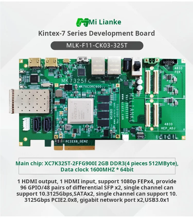 Proporciona soporte de memoria DDR3 y múltiples interfaces de expansión, incluidos conectores FMC, lo que ofrece opciones flexibles de expansión del sistema para diversos requisitos de aplicaciones.