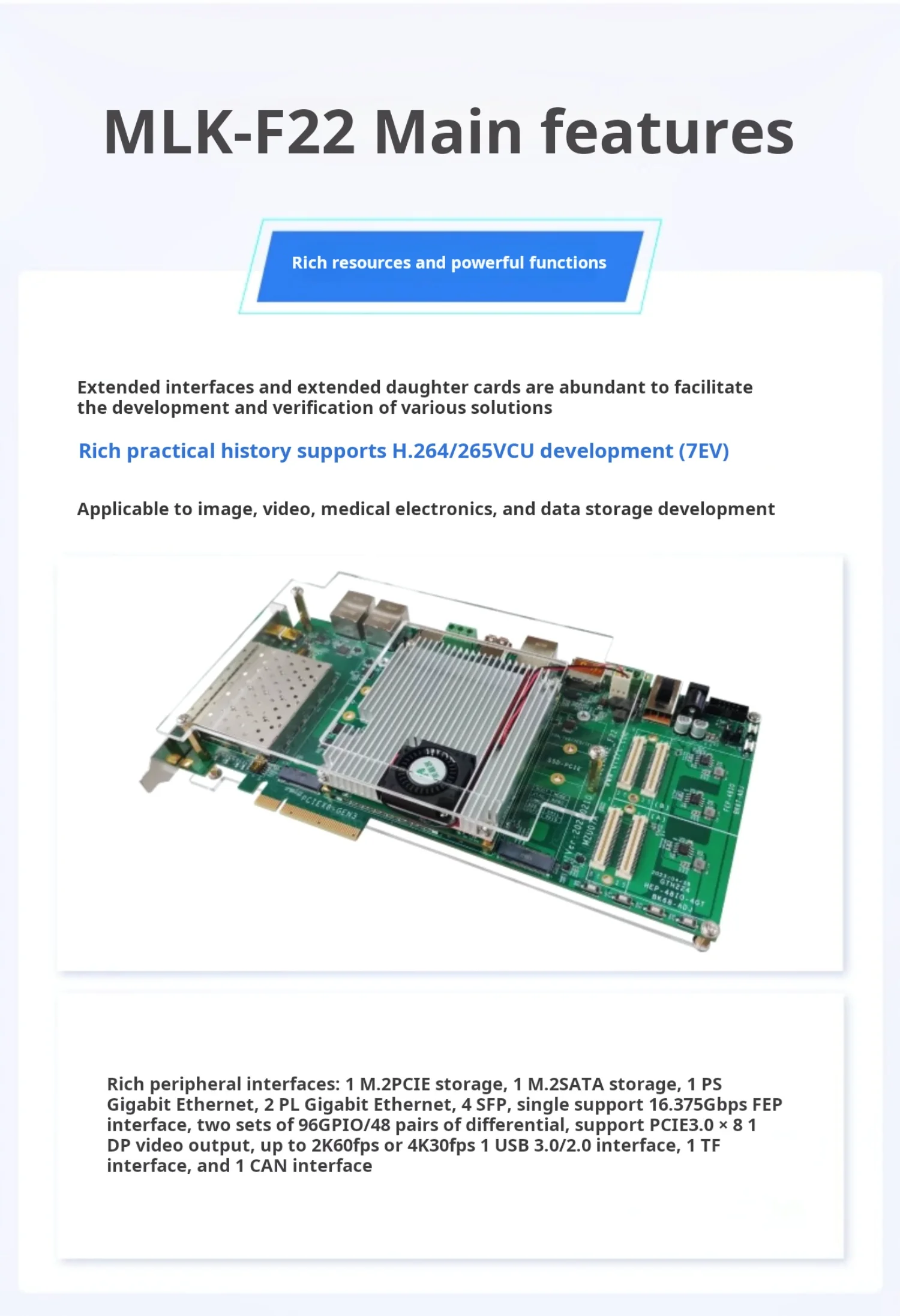 Comprar MILINKER MLK-F22-CM03: placa FPGA Xilinx MPSoC con PCIe, MIPI y eMMC para informática heterogénea