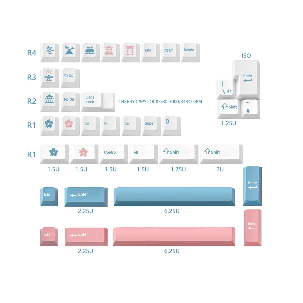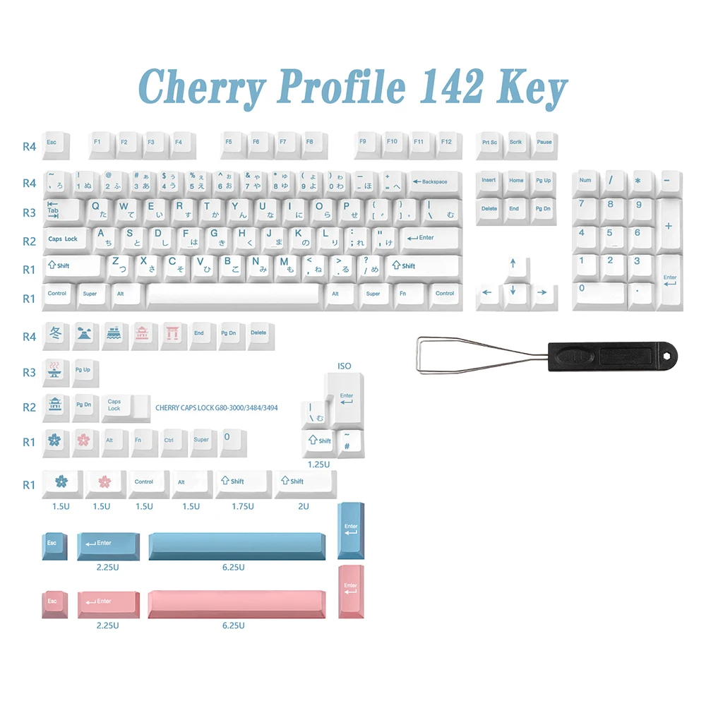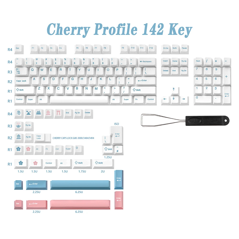 【 Compatibilidad de 142 teclas de las teclas 】Las teclas son adecuadas para la mayoría de los teclados del mercado, como 61/64/68/75/84/87/980/104/108 6.25u Barra espaciadora Teclado mecánico Cherry MX para juegos, e interruptores de teclado con interruptores en forma de cruz.Nombre: Milkyway Fuyu Perfil: perfil cereza