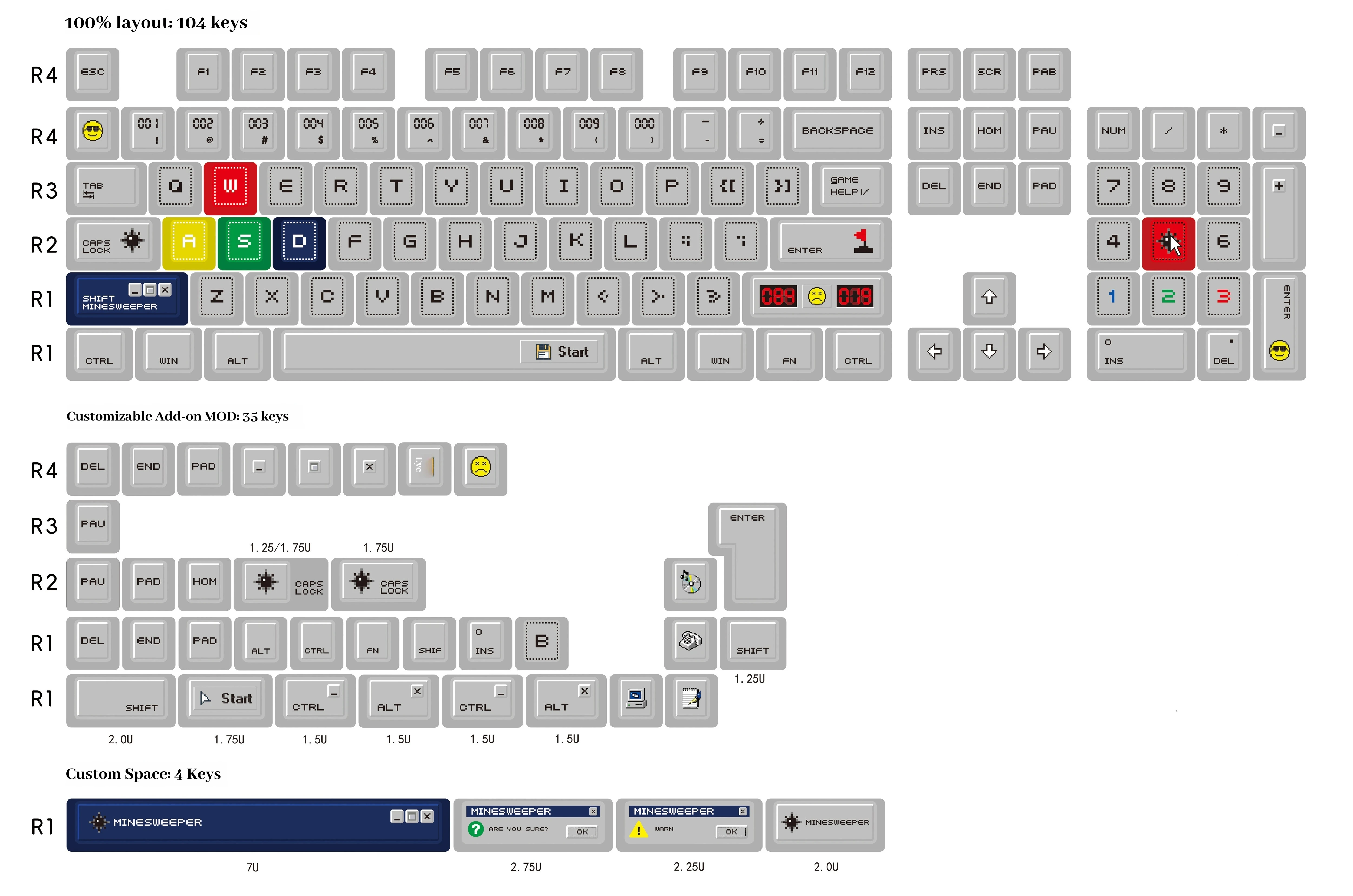 Comprar Minesweeper-teclas con tema de juego, 143 teclas, altura de cereza, Pbt, sublimación térmica de cinco lados, teclas de teclado mecánico