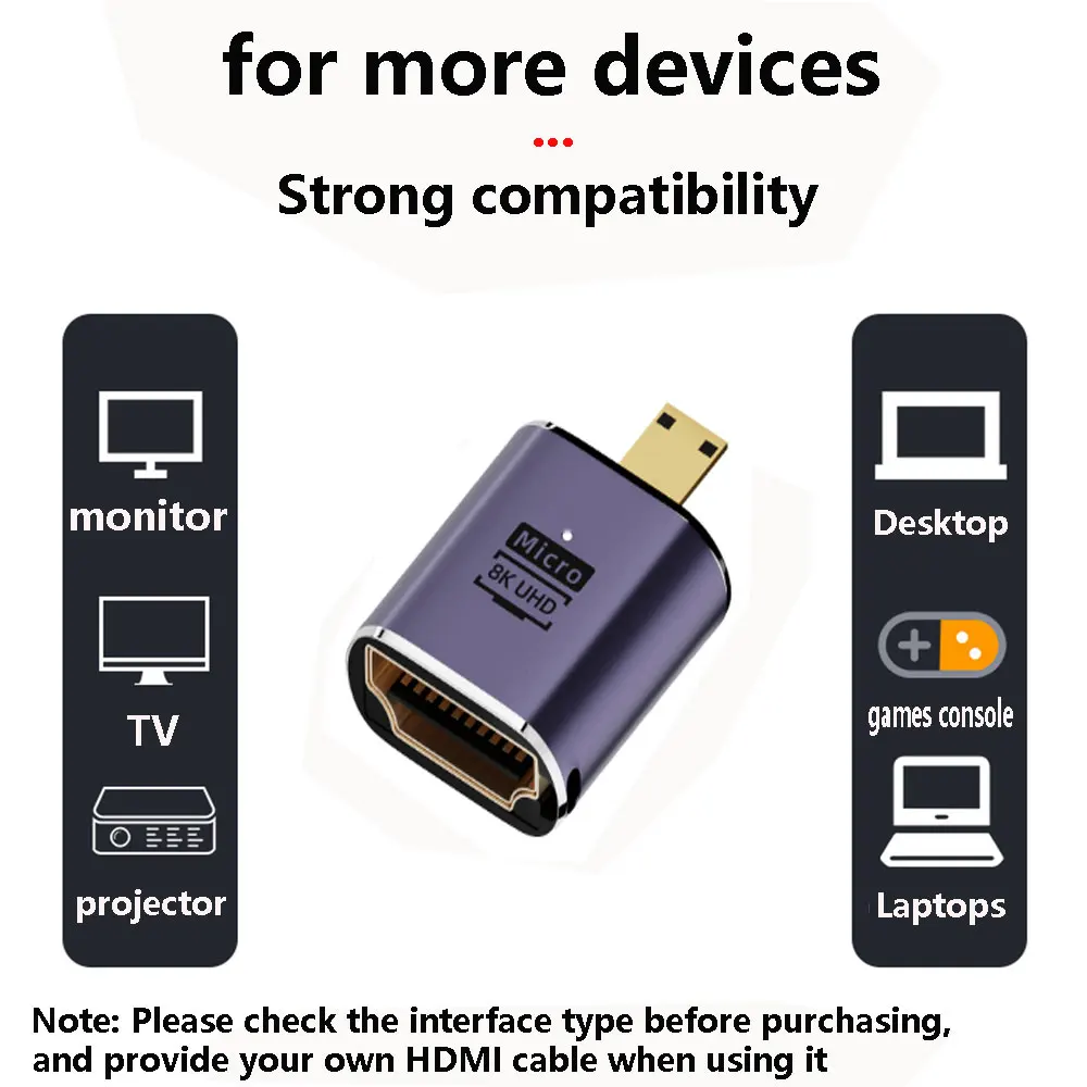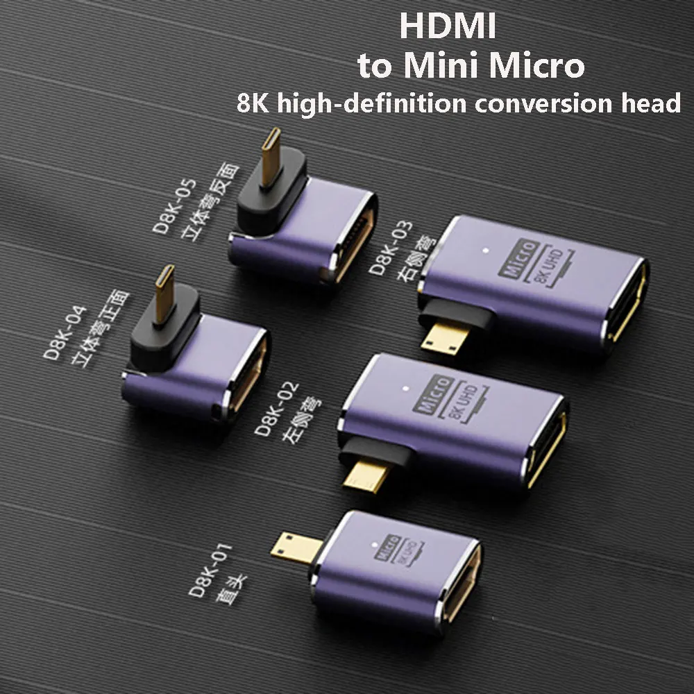 Adaptador de cabeza mini HDMI macho 1 180 mini HDMI macho a HDMI hembra Convertidor en ángulo L HD 2,1 V extensión 4K 8K 60Hz