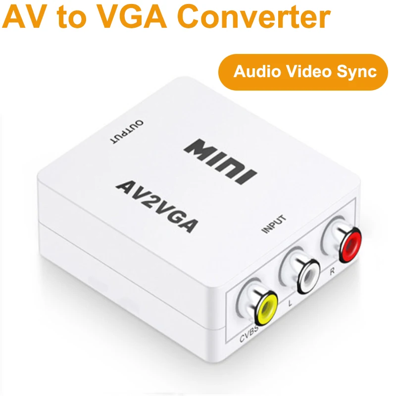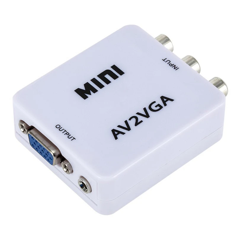 Comprar Mini Adaptador convertidor de vídeo 1080P RCA AV a VGA con Audio de 3,5mm AV2VGA / CVBS + Audio para PS2, DVD, TV Box, cámara a Monitor de TV
