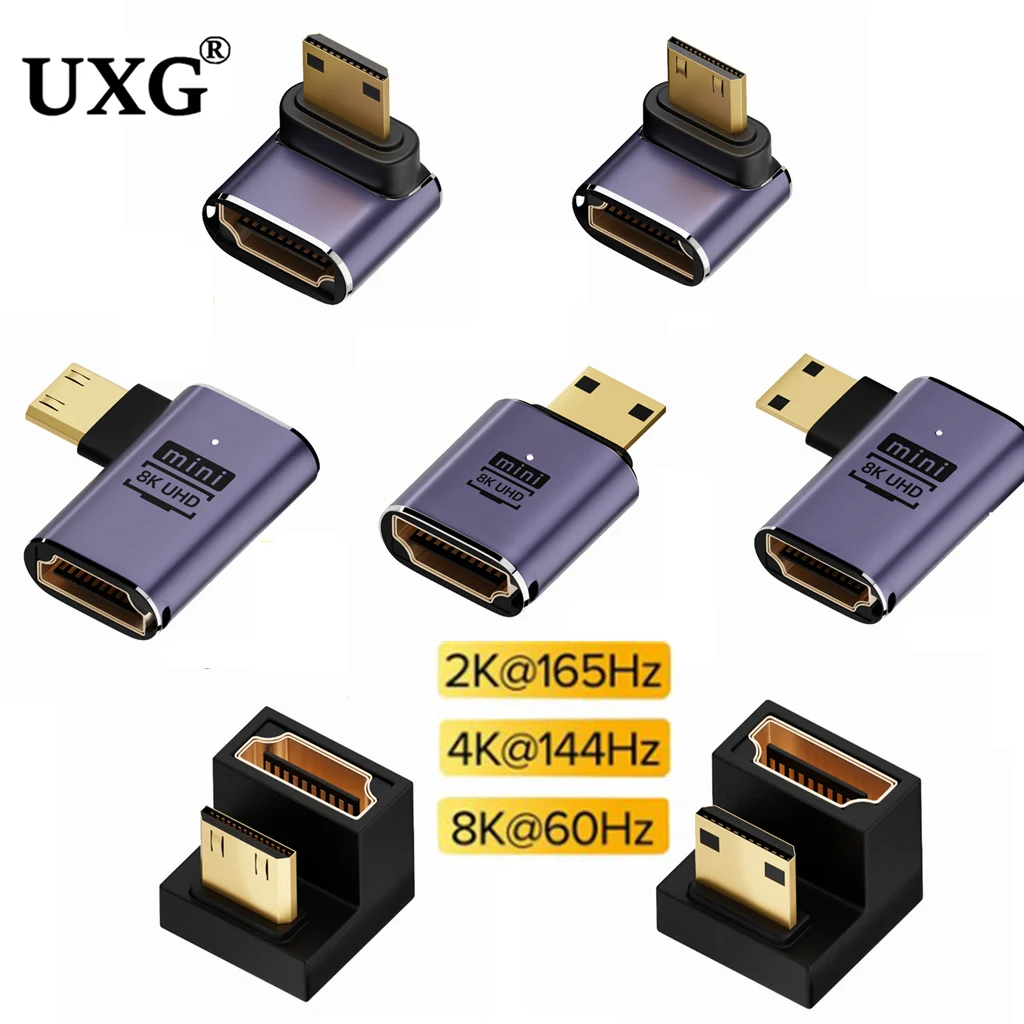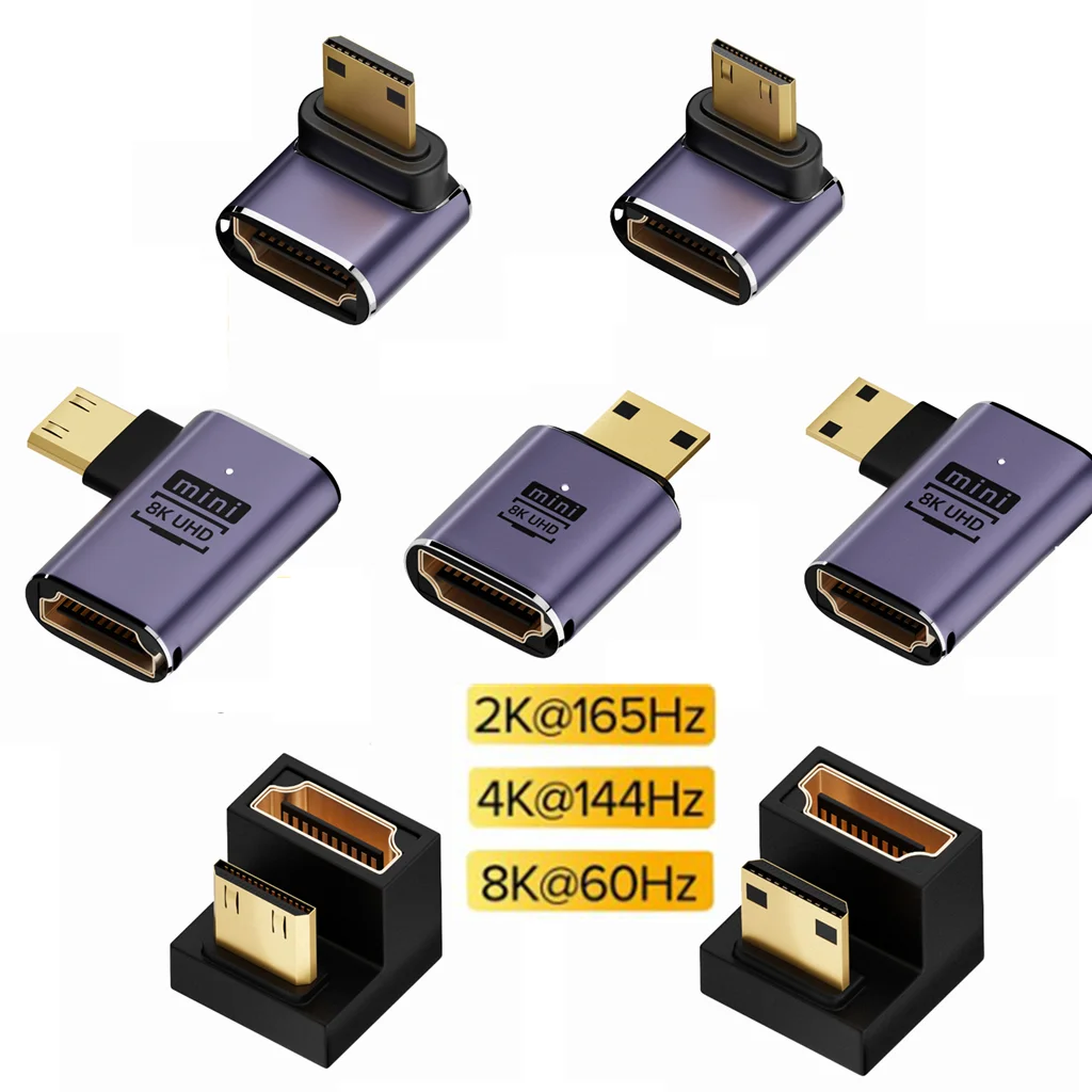 Comprar Mini adaptador de género HD en forma de U de 360 grados, convertidor macho a HDMI hembra en ángulo, extensión tipo C, HDTV, 4K8K, 60Hz, 180