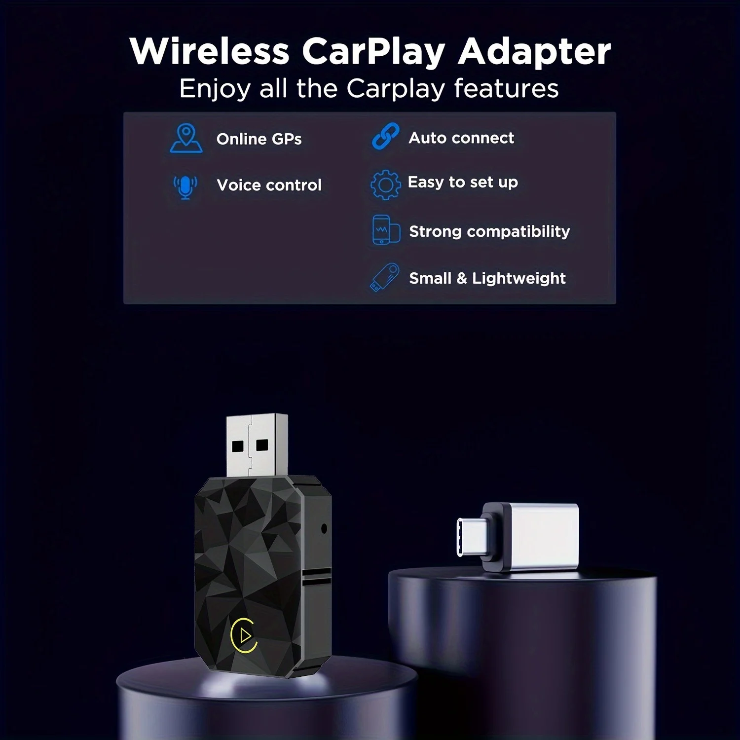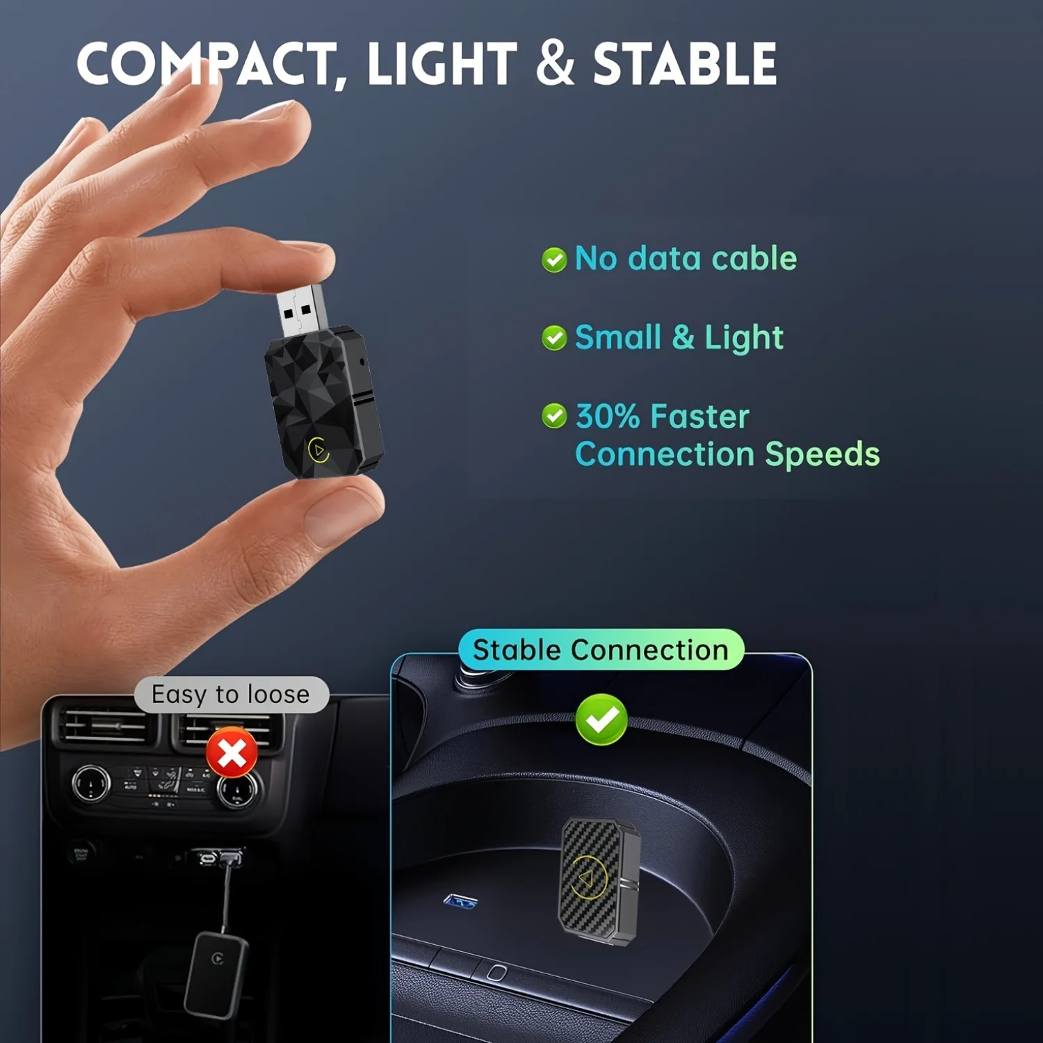 【Rápido y estable】Este adaptador carplay inalámbrico está equipado con un módulo de transmisión WiFi y BT 5.0 mejorado para una respuesta más rápida y una conexión más estable.También puede controlar la navegación, la música y las comunicaciones mediante comandos de voz, gestos con pantalla táctil o controles del volante para una conducción verdaderamente intuitiva.