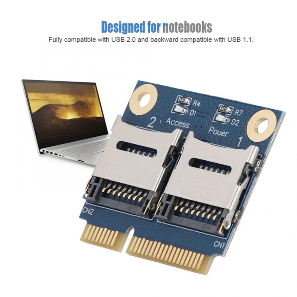 Adaptador Mini PCI-E a 2MicroSD Tarjeta vertical PCI-Express a doble TF Notebook SSD lector de tarjetas Convertidor Tarjeta extensora