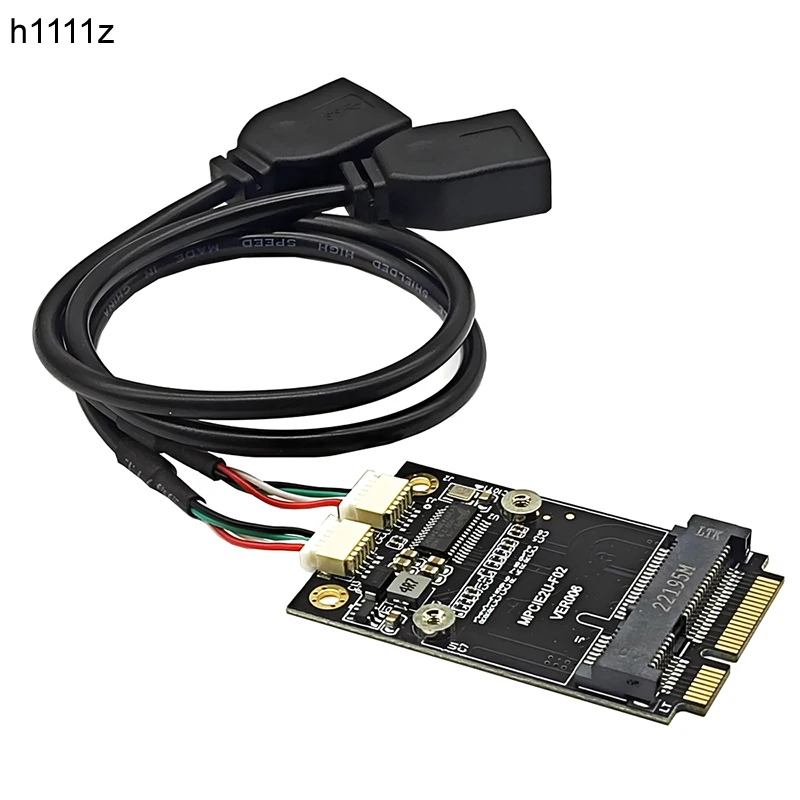 Adaptador Mini PCI Express a USB Dual mPCIe a convertidor USB2.0 de 5 pines y 2 puertos para Mini tarjeta PCIE de altura completa/media/disco Flash USB