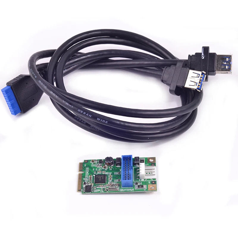 Comprar Mini adaptador PCIE USB Mini PCI-e a 2 puertos USB3.0 20 pines 19 pines a mpcie tarjeta adaptadora usb 3,0 HUB