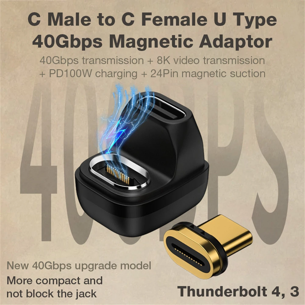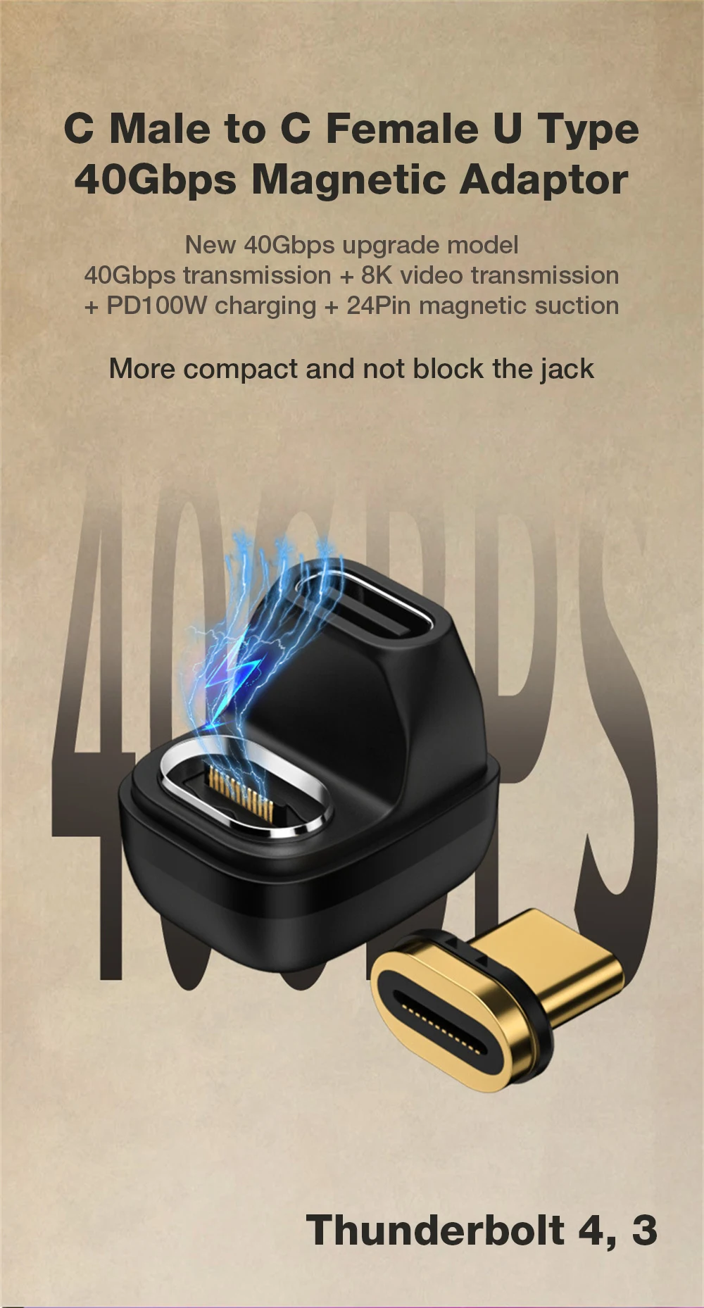 Mini adaptador USB4.0 40Gbps en forma de U Thunderbolt3 USB C a tipo C 100W convertidor de carga rápida 8K @ 60Hz USB tipo C adaptador de datos