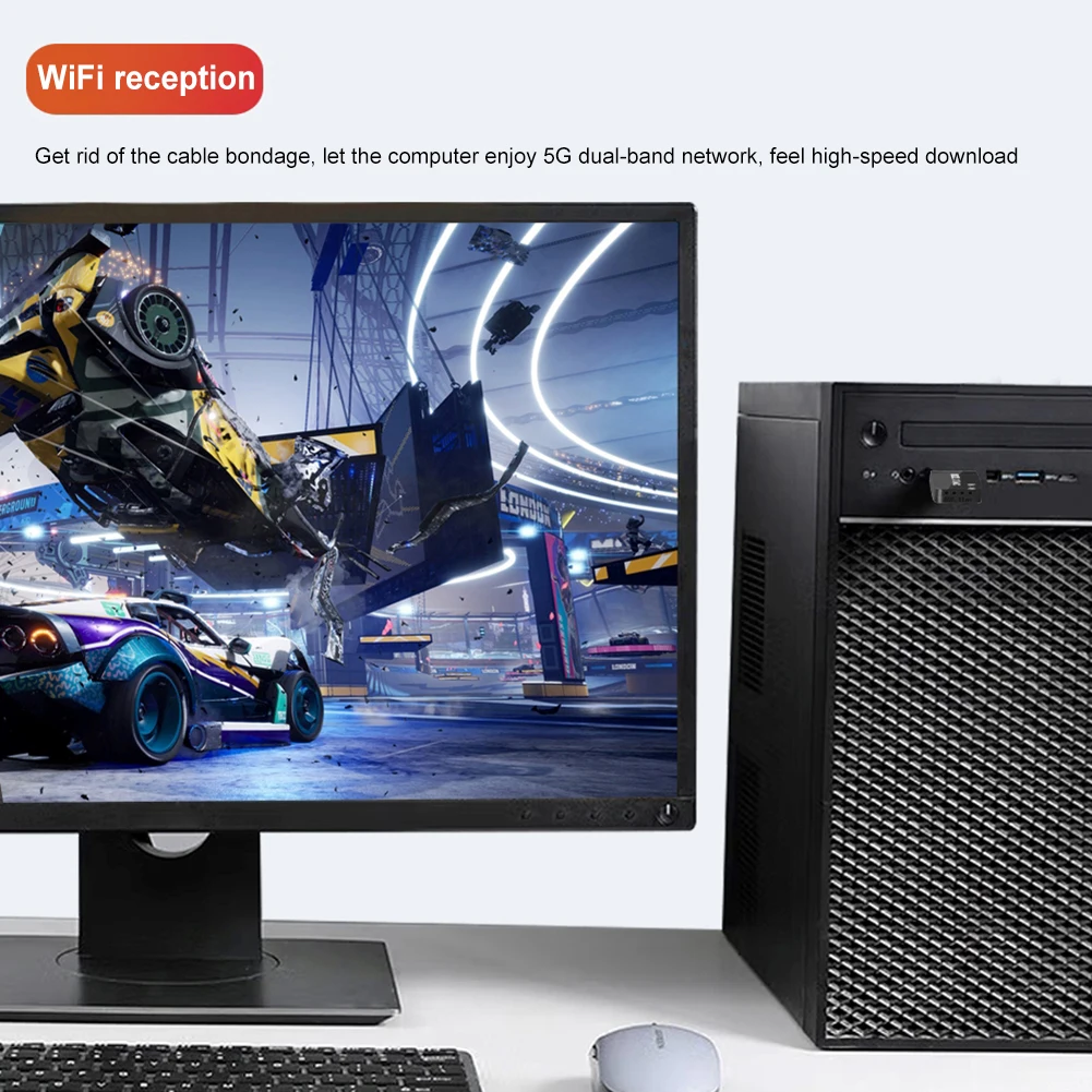 Característica:1.Conectividad de doble banda:El adaptador WiFi mini USB permite conexiones inalámbricas para PC de escritorio y otros dispositivos, ofreciendo una solución de Internet cómoda y rápida.Cuenta con detección automática para ajustar las velocidades sin problemas para un rendimiento óptimo.