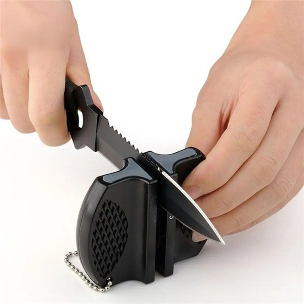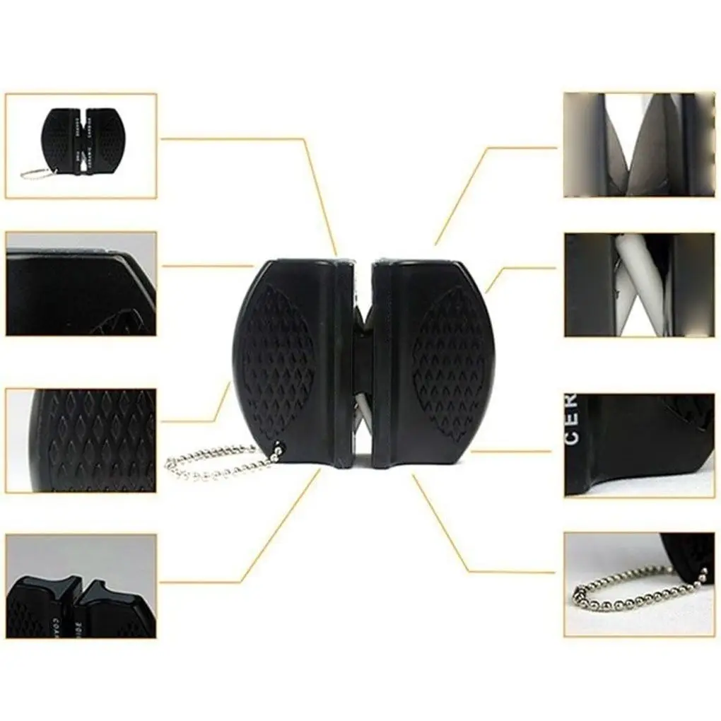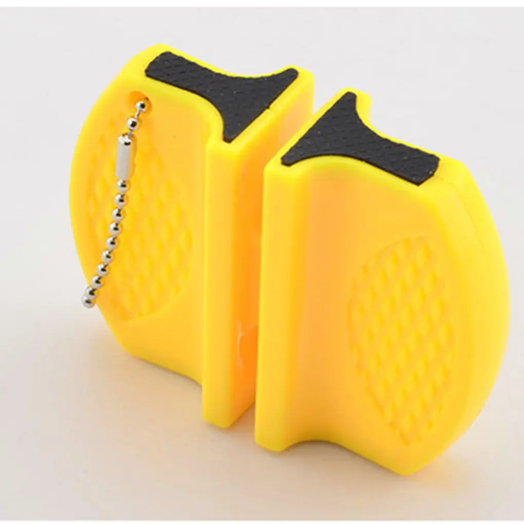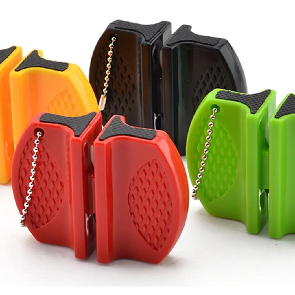 Comprar Mini afilador de cortador de cocina tipo mariposa, bolsillo de dos etapas, Camping, senderismo, piedra de afilar para el hogar