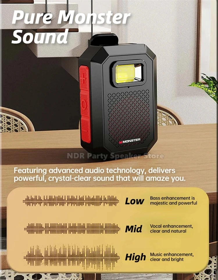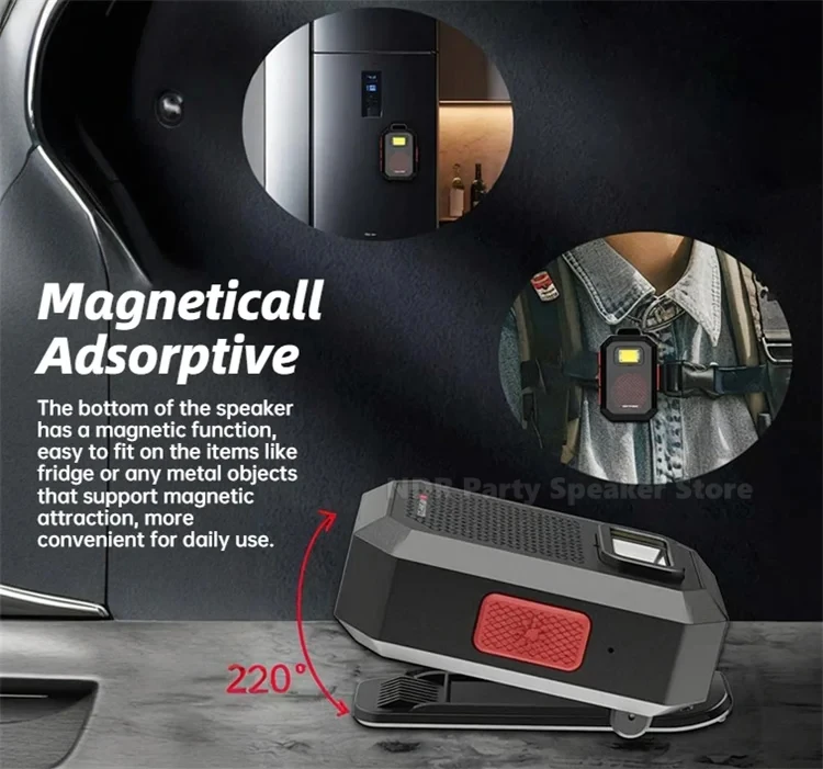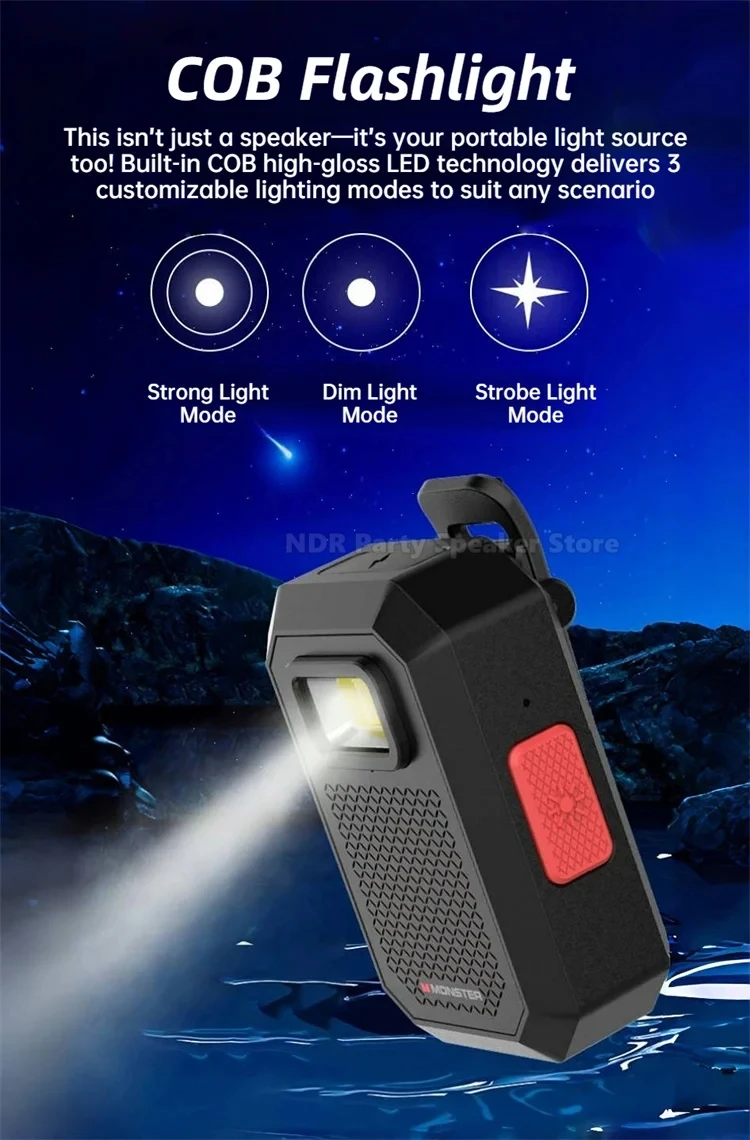 [Linterna COB] Esto no es solo un altavoz: ¡también es su fuente de luz portátil!La tecnología LED COB de alto brillo incorporada ofrece 3 modos de iluminación personalizables para adaptarse a cualquier escenario: