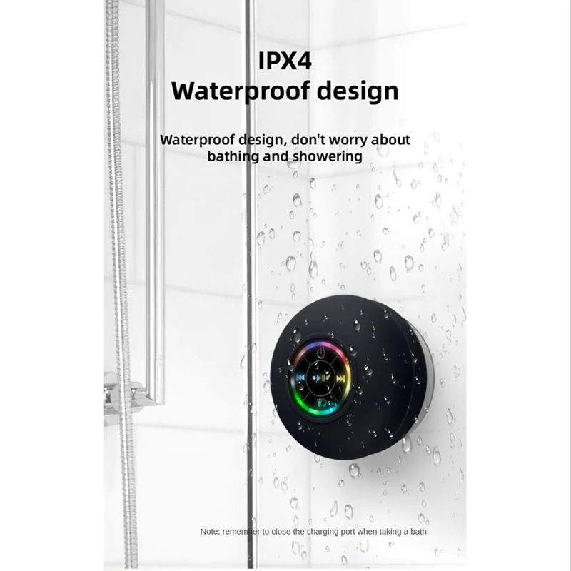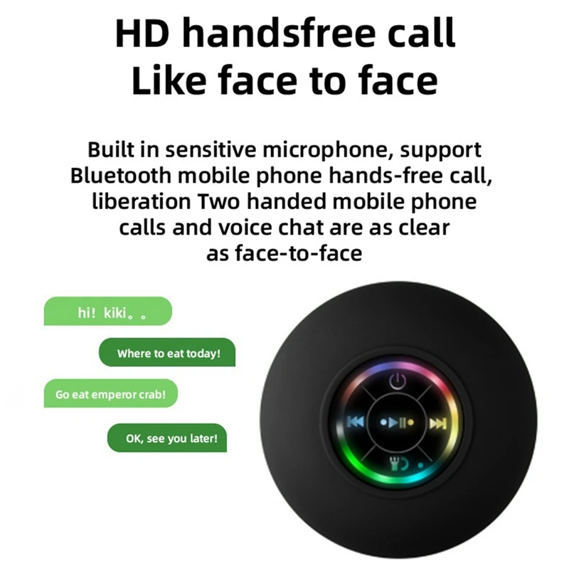 Mini altavoz Bluetooth, resistente al agua, Audio para baño, altavoces inalámbricos para ducha, luz RGB, altavoz con ventosa Bluetooth, blanco
