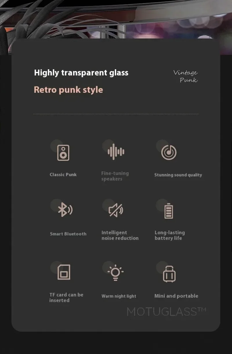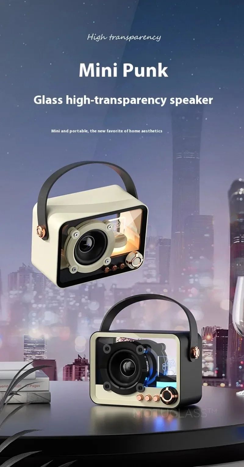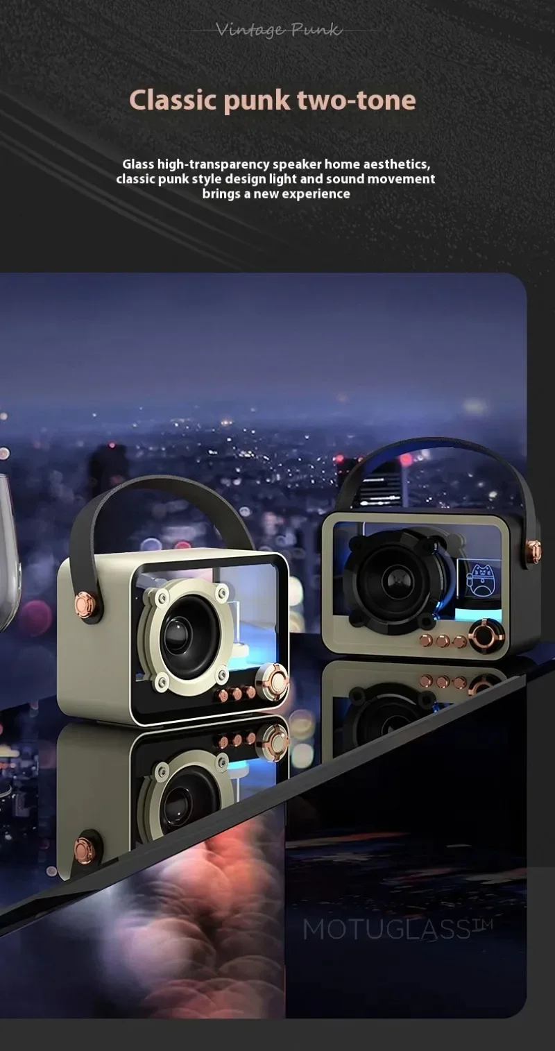 Mini Altavoz Bluetooth Punk Retro, caja de sonido portátil, diseño Mech transparente con luces LED, gran regalo para hombres y mujeres