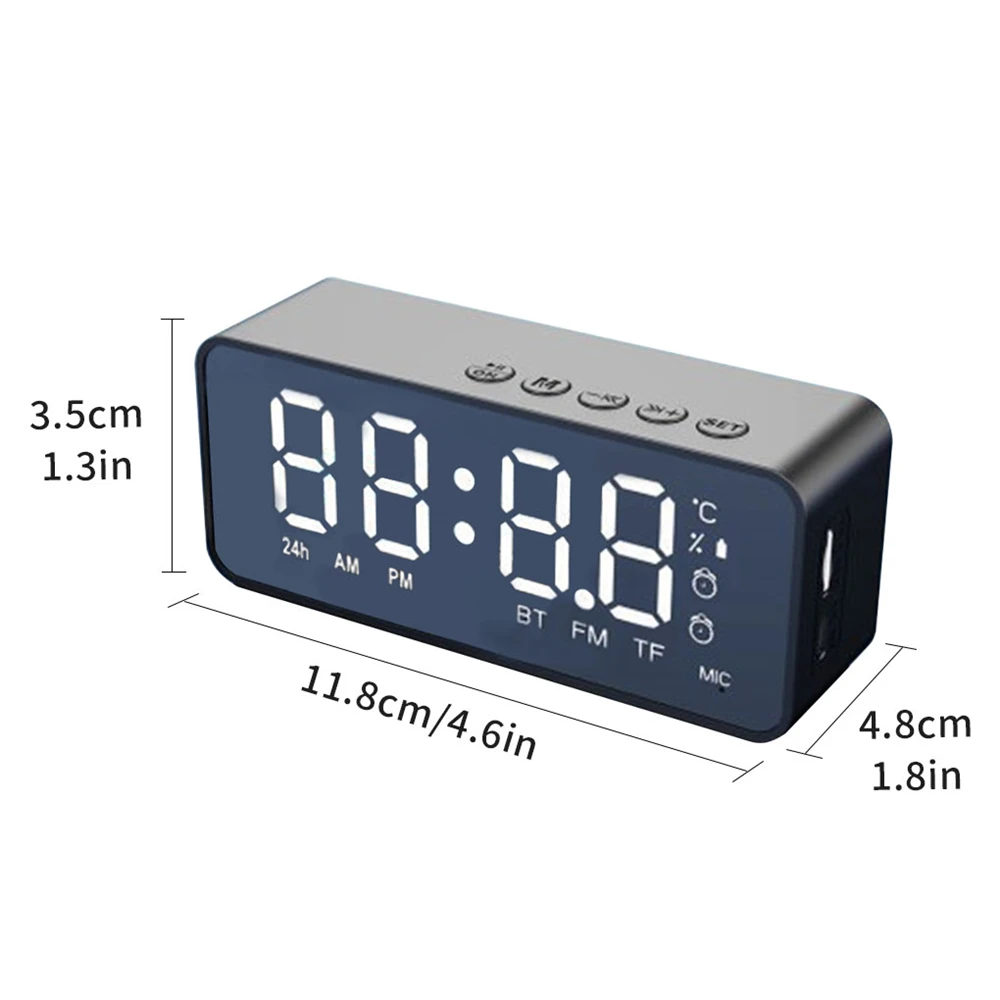 Comprar Mini altavoz de compatibilidad Bluetooth, caja de sonido inalámbrica con reloj de alarma con pantalla LED, Hifi, tarjeta TF, MP3, música, nuevo