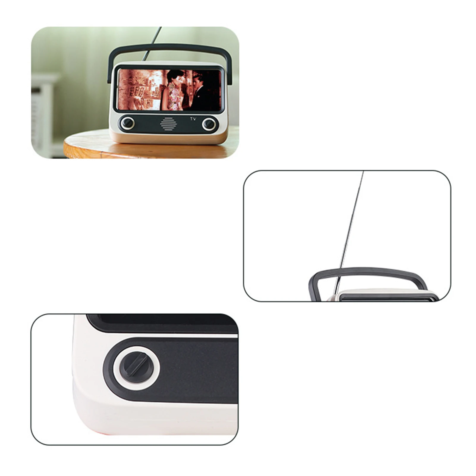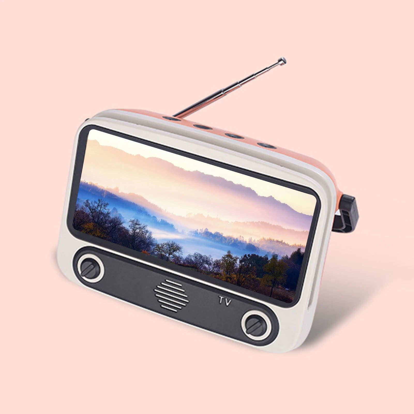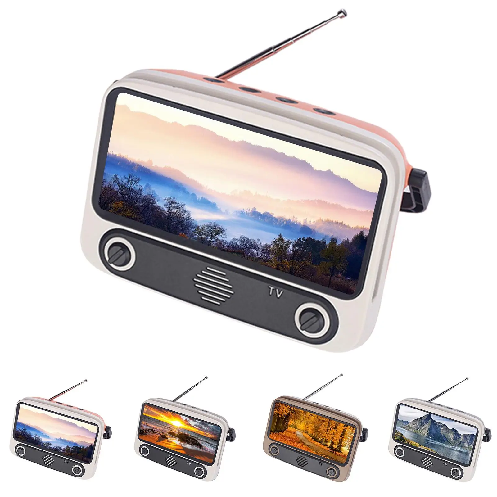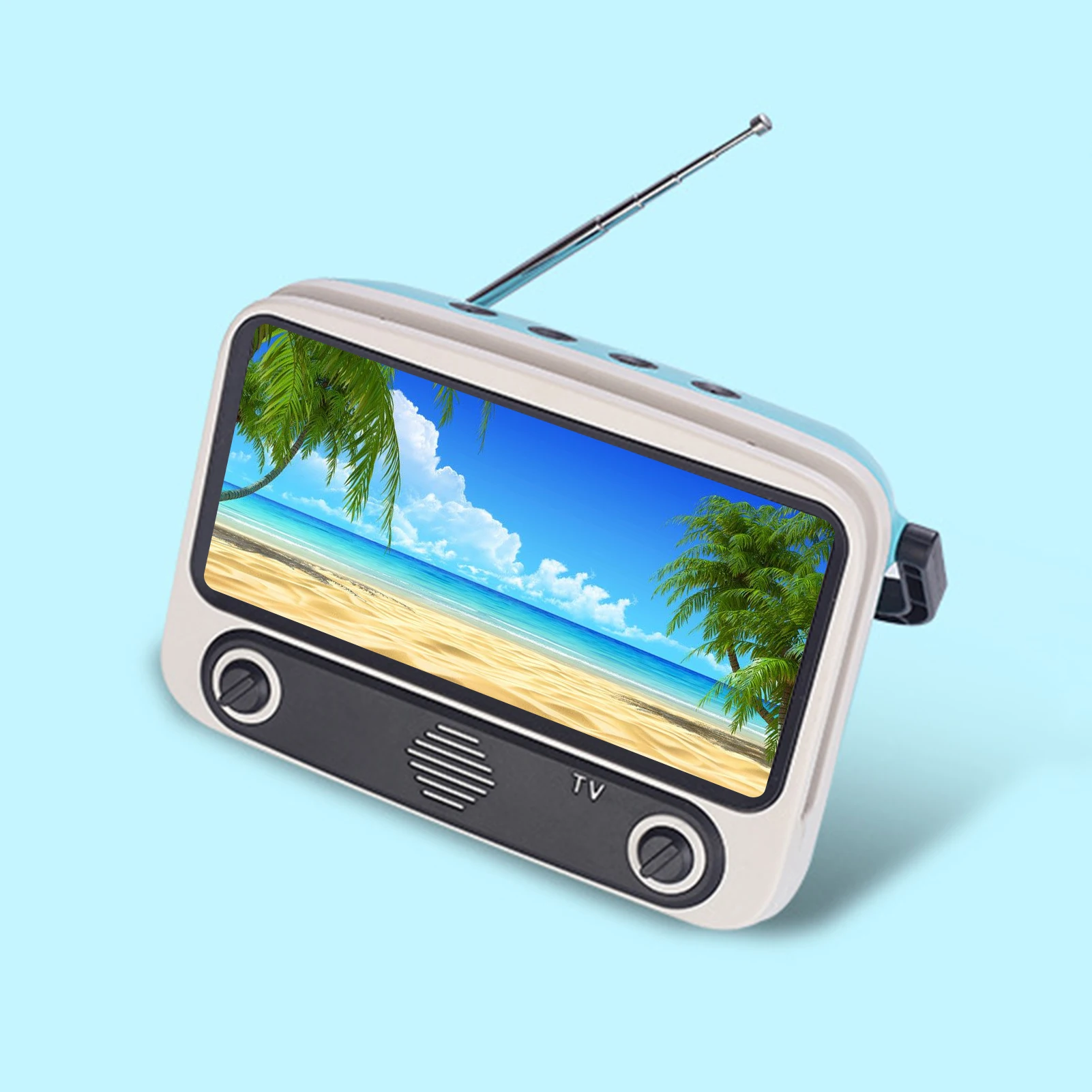 Soporte para teléfono en forma de TV altavoz inalámbrico Bluetooth soporte para teléfono móvil portátil con ranura para tarjeta U disco decoración para dormitorio