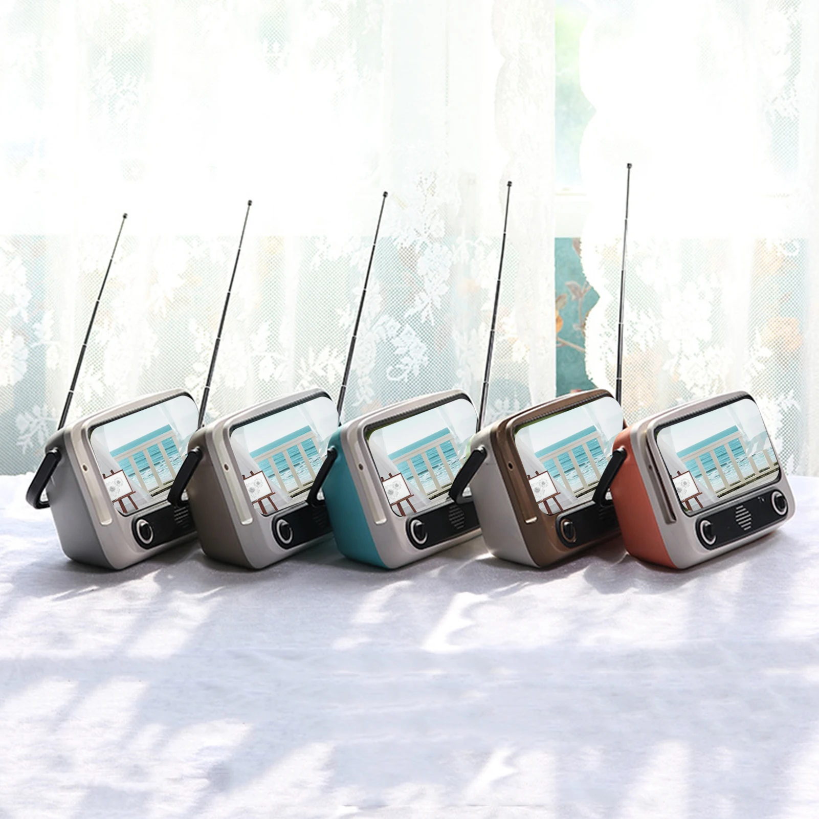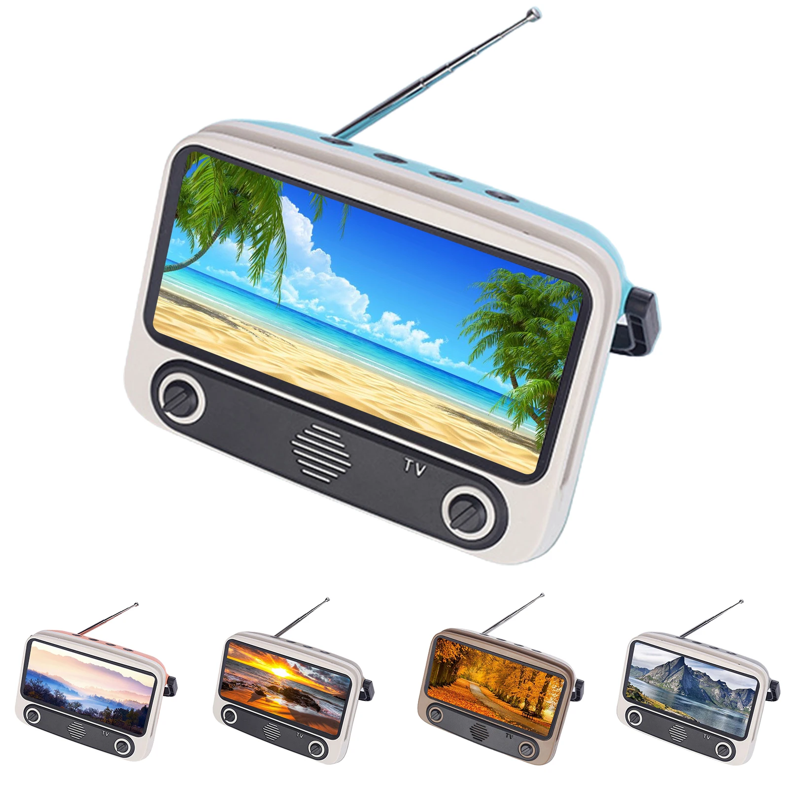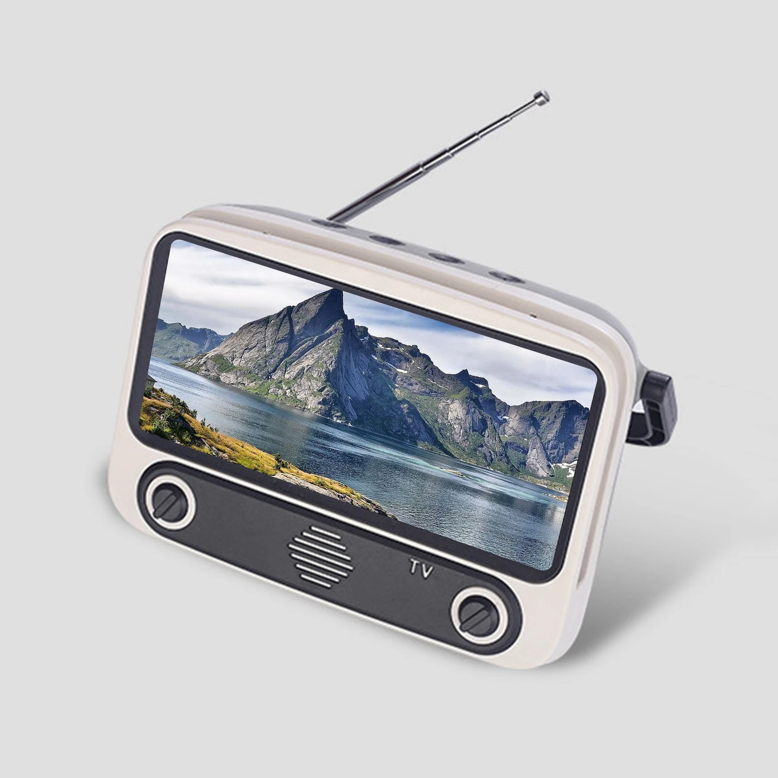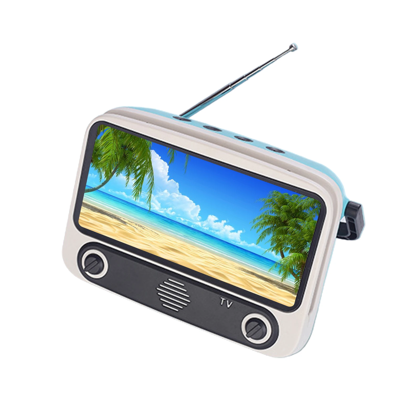 Soporte para teléfono en forma de TV altavoz inalámbrico Bluetooth soporte para teléfono móvil portátil con ranura para tarjeta U disco decoración para dormitorio