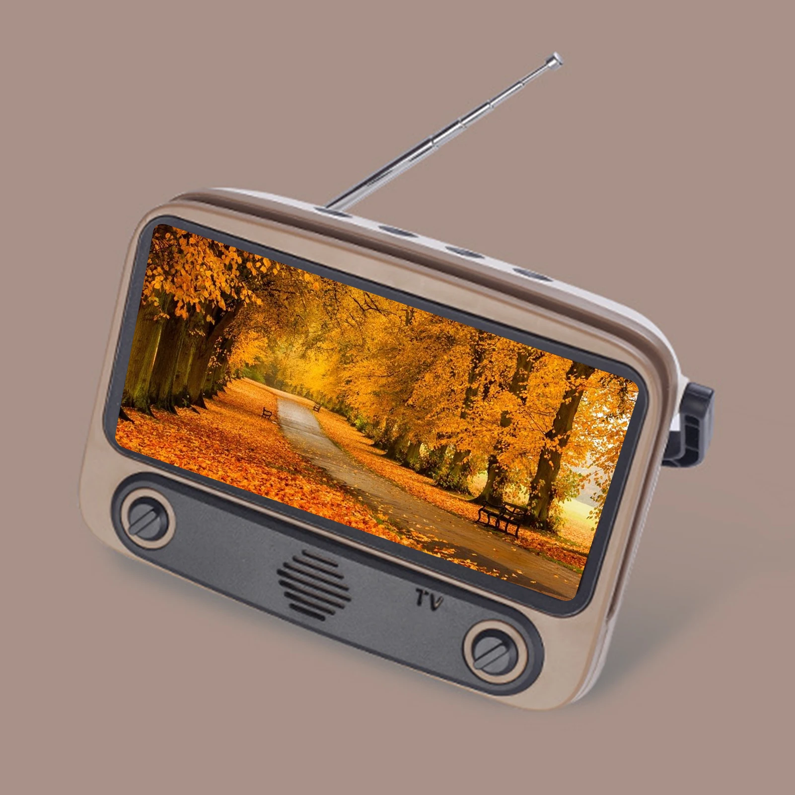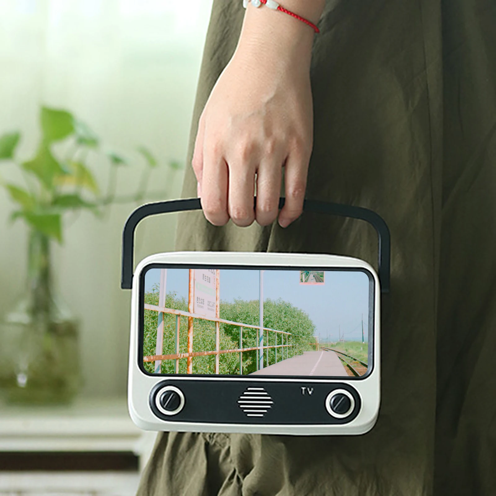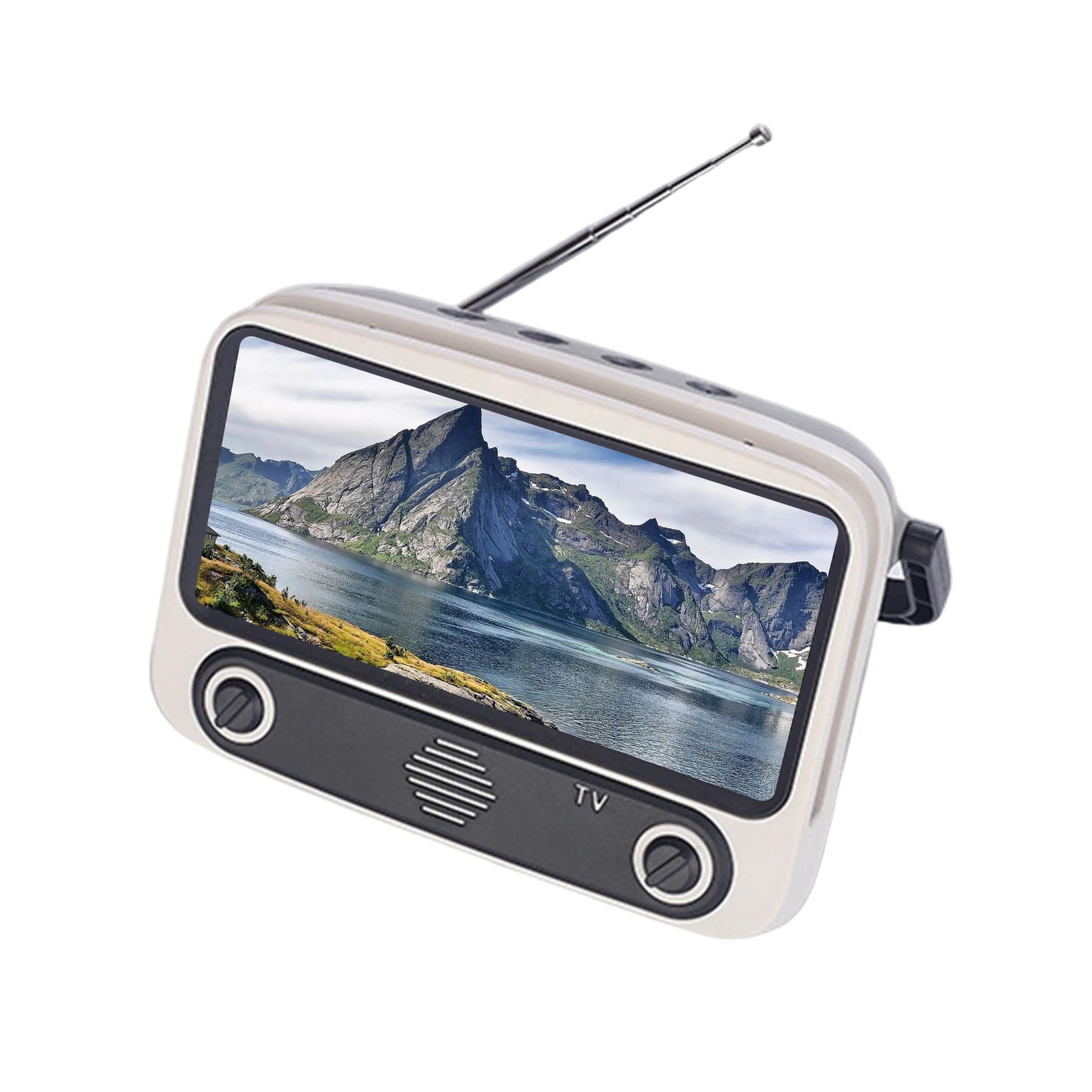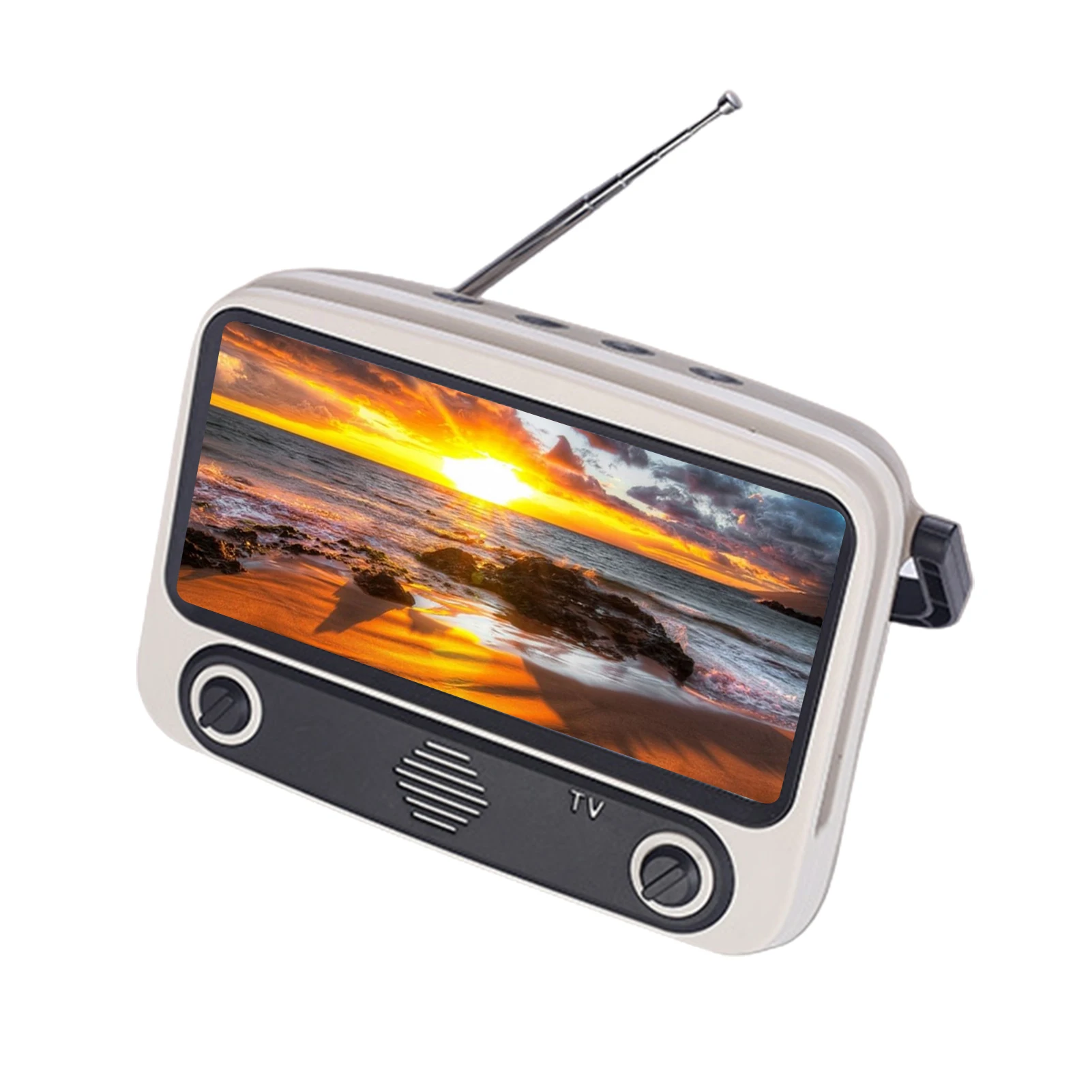 Soporte para teléfono en forma de TV altavoz inalámbrico Bluetooth soporte para teléfono móvil portátil con ranura para tarjeta U disco decoración para dormitorio
