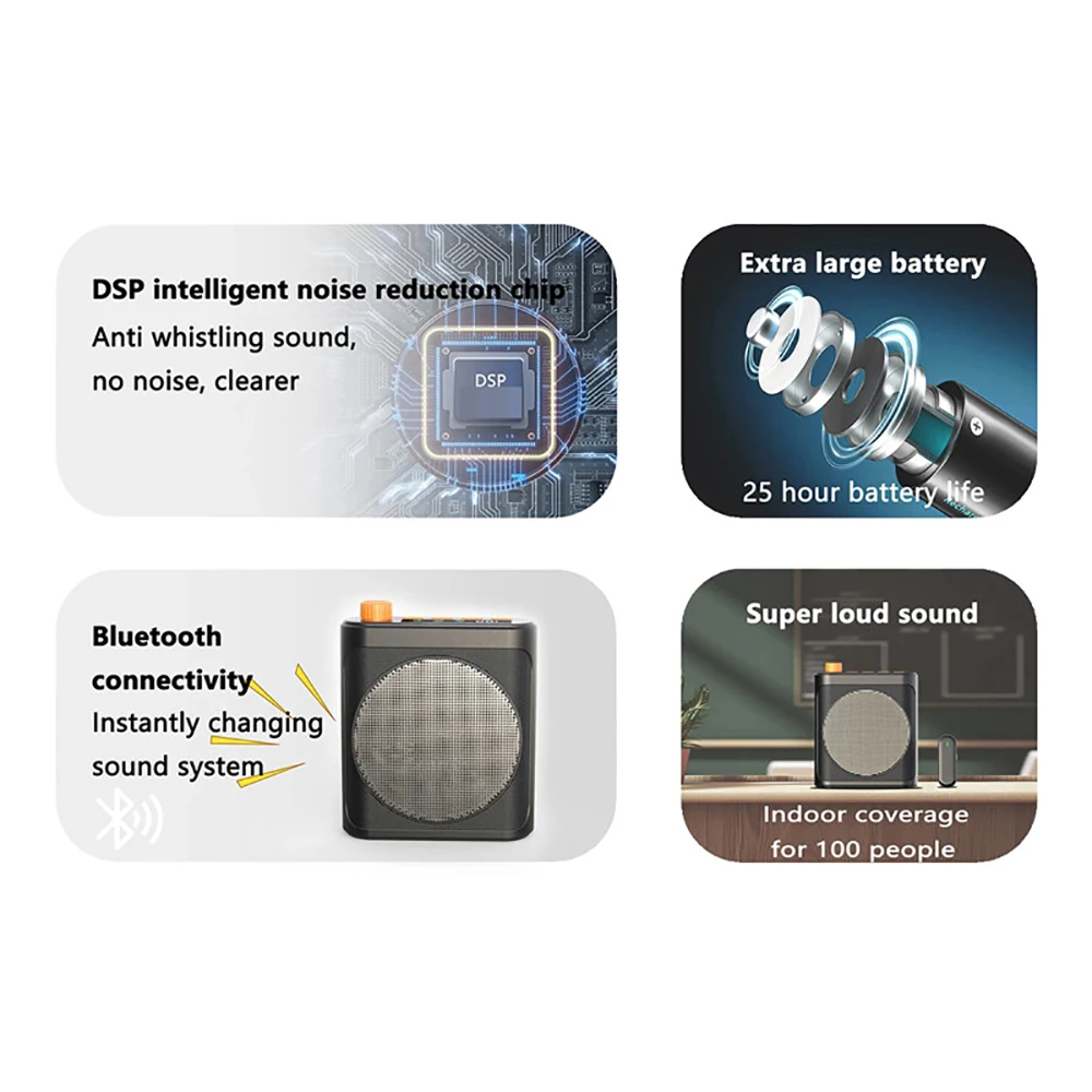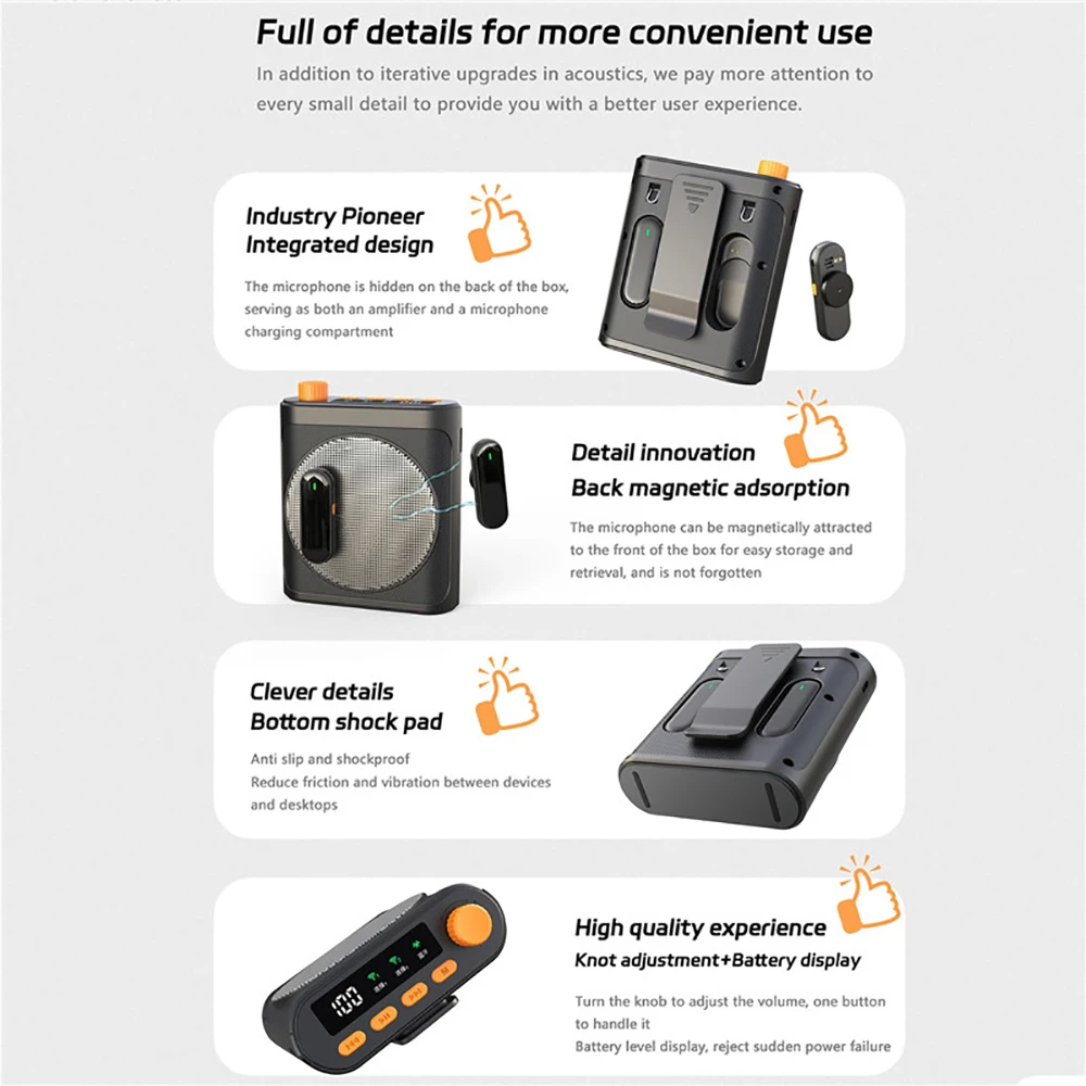 Comprar Mini amplificador de micrófono inalámbrico con estuche de carga micrófono Lavalier megáfono altavoz para profesores guías turísticas entrenadores