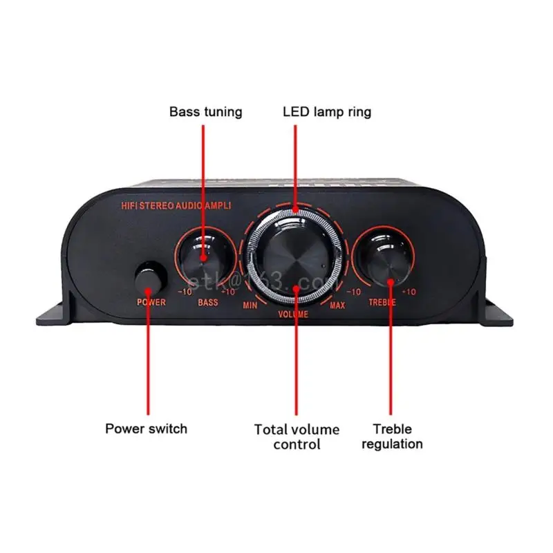 Apto para entusiastas de la música y amantes de la música, el mini amplificador de potencia está diseñado para mejorar su experiencia. Tanto si es DJ profesional como si simplemente disfruta de un sonido de alta calidad, este amplificador es perfecto para usted.