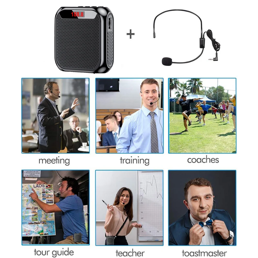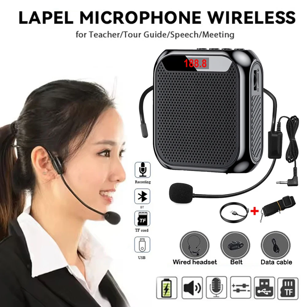 Comprar Mini amplificador de voz portátil, amplificador de micrófono portátil, micrófono para profesores, altavoz, compatible con Bluetooth, grabación, etc.