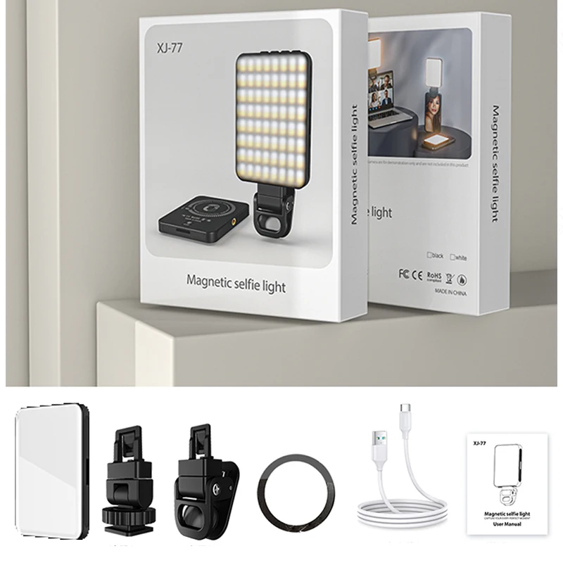 La luz selfie para iPhone Dura aproximadamente 15 horas de luz con un 10% de brillo, dura 4 horas de luz con un 50% de brillo y la batería se recarga rápidamente.Compatible con todos los teléfonos, tabletas, portátiles, ordenadores, trípodes y cámaras.