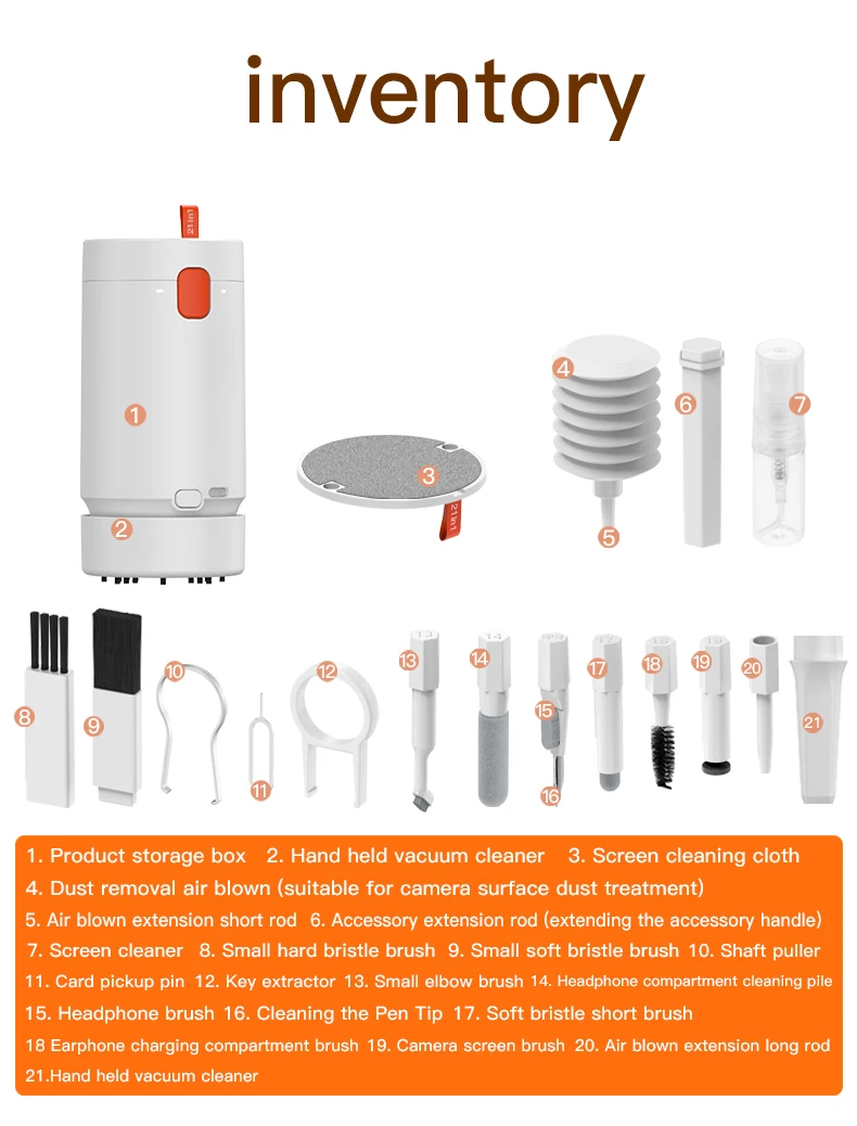 Comprar Mini aspiradora recargable 21 en 1 para teclado de ordenador, Juego de cepillos de limpieza para teléfono móvil, herramientas para el cuidado de la Cámara, auriculares de escritorio