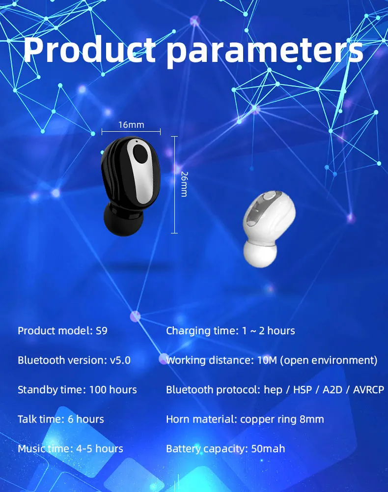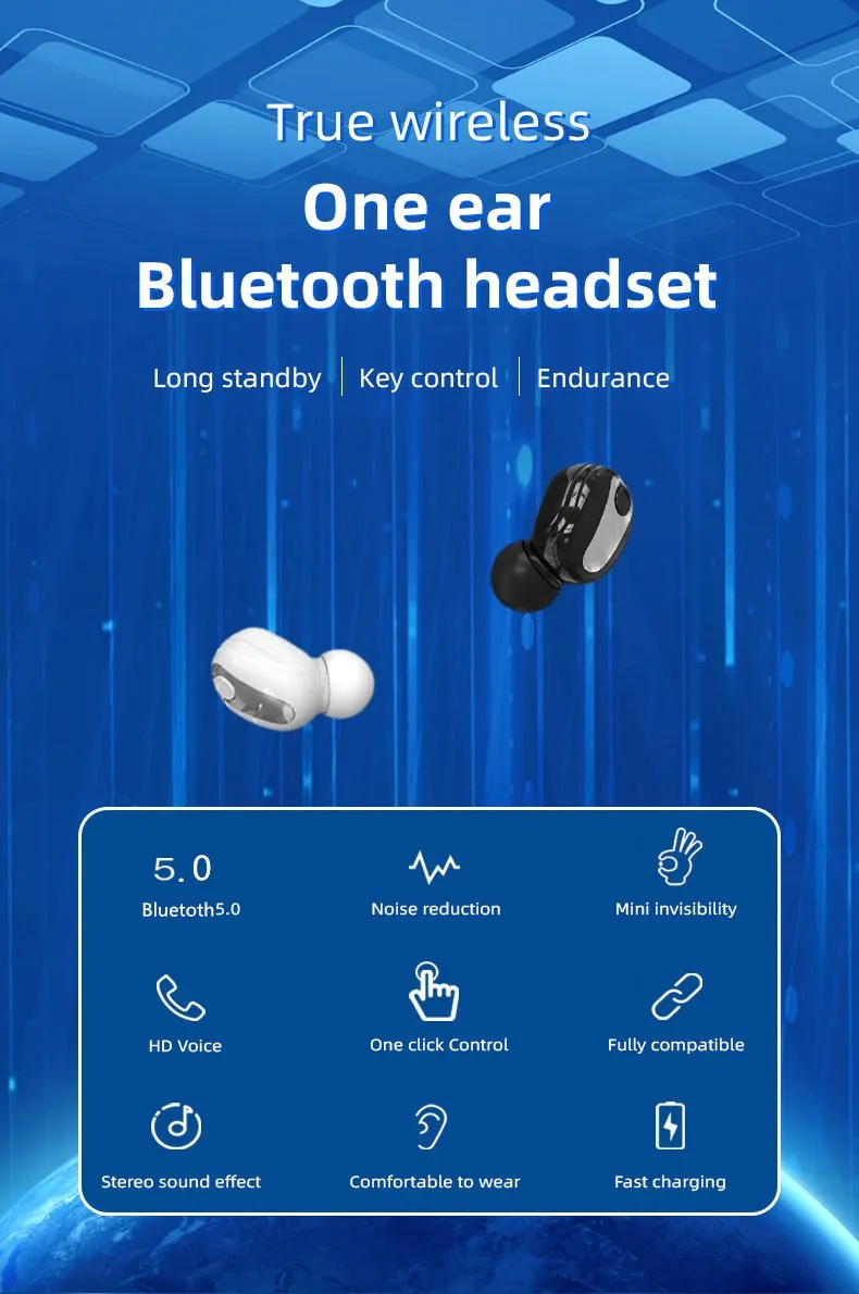 Auricular de diseño súper mini oculto en el oído, pequeño y ligero, diseño sigiloso.