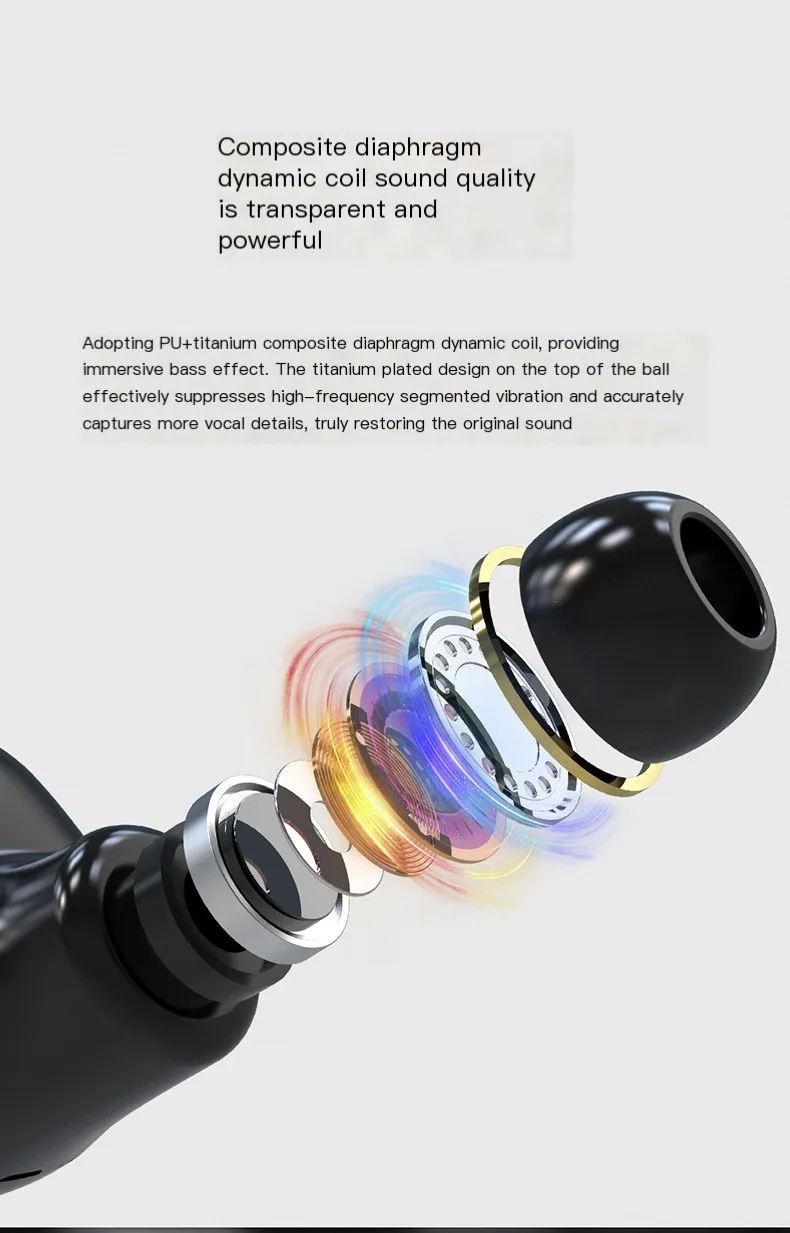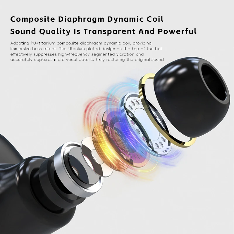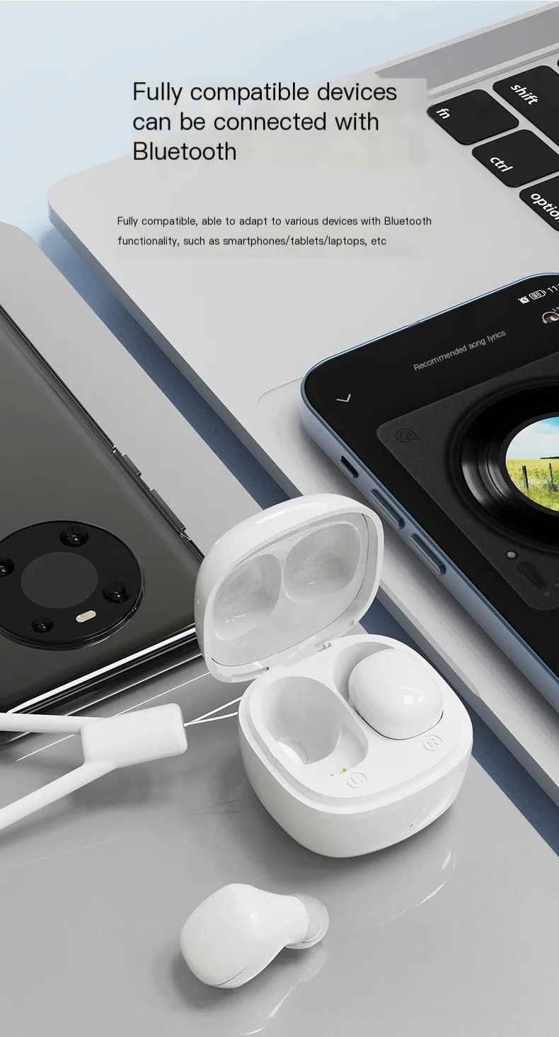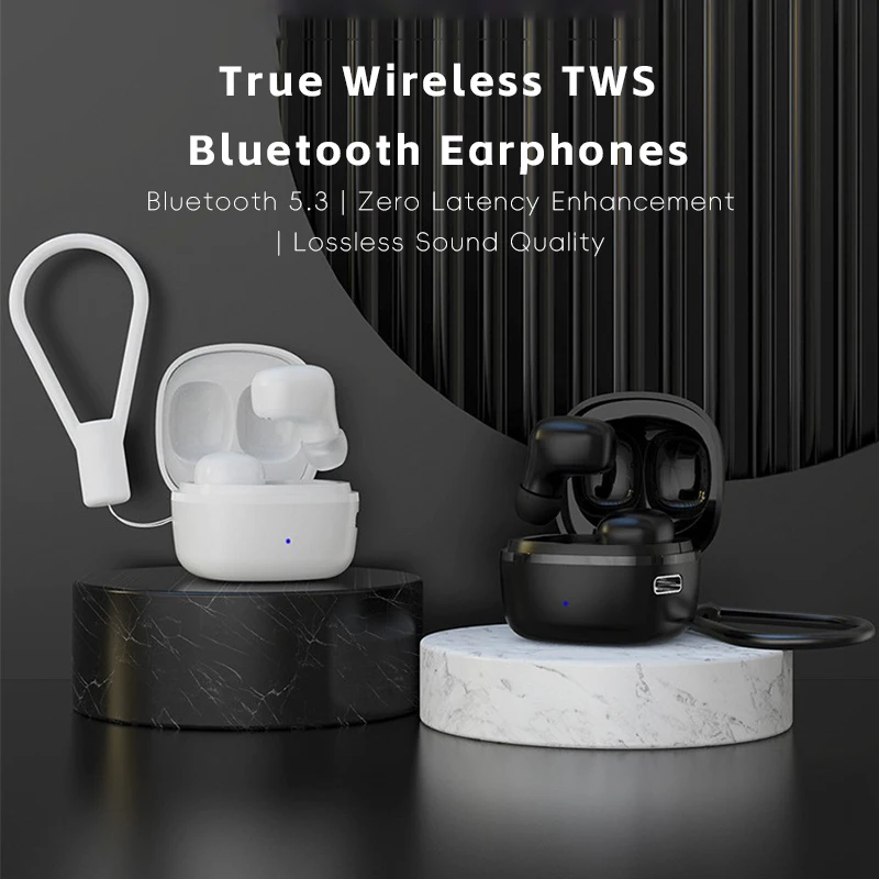 Comprar Mini auriculares inalámbricos TWS, audífonos intrauditivos con Bluetooth, reducción de ruido, largo alcance, con micrófono, caja de carga y cordón