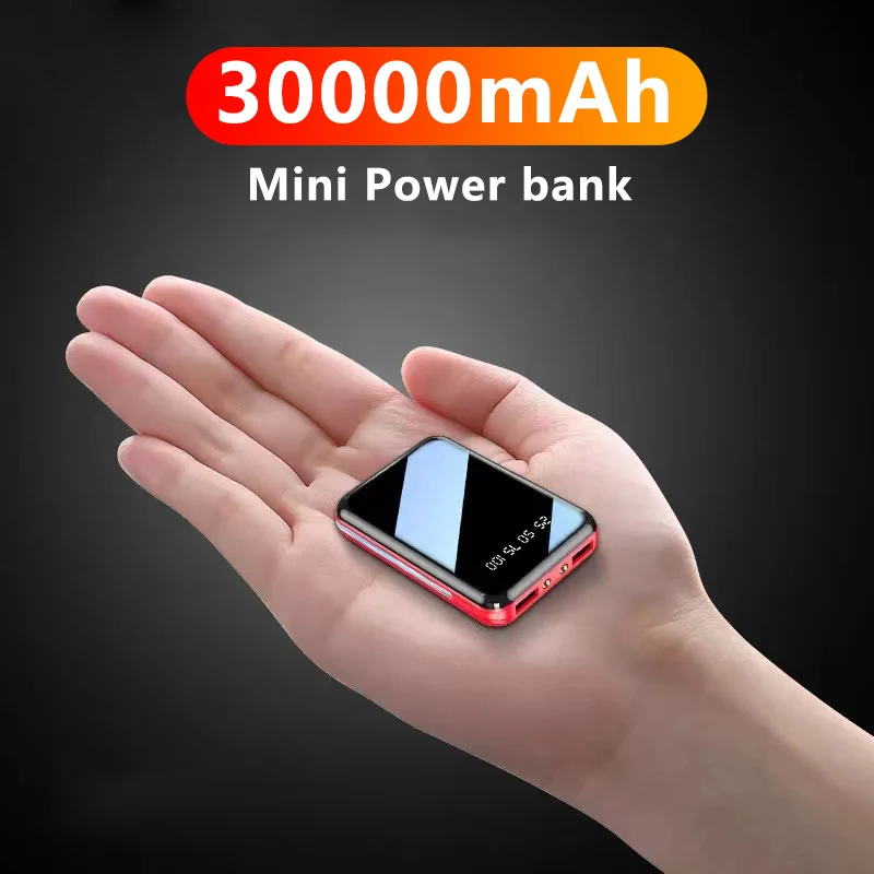 Mini banco de energía portátil de 30000mAh, pantalla de espejo, pantalla Digital LED, batería externa Powerbank, Poverbank para teléfonos móviles