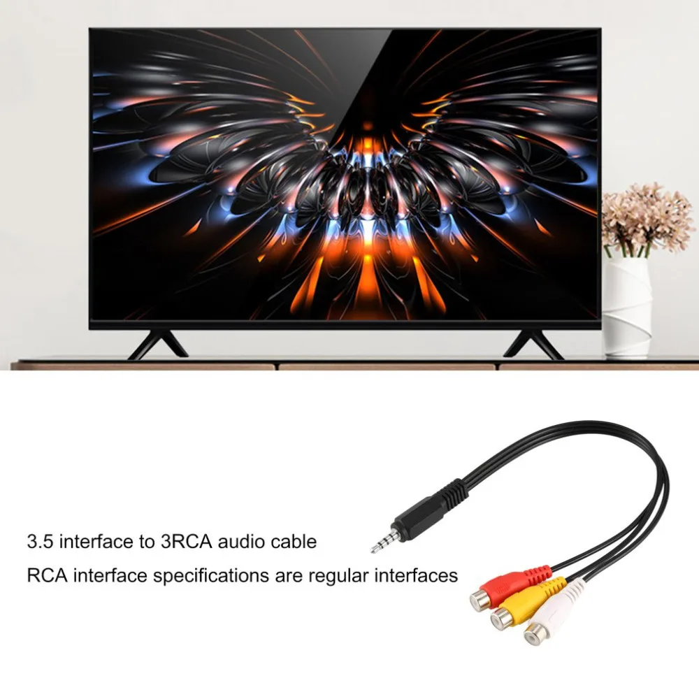 Comprar Mini Cable adaptador Aux macho estéreo a 3 RCA hembra para Audio y vídeo, convertidor de 28cm, 3,5mm, 1 unidad