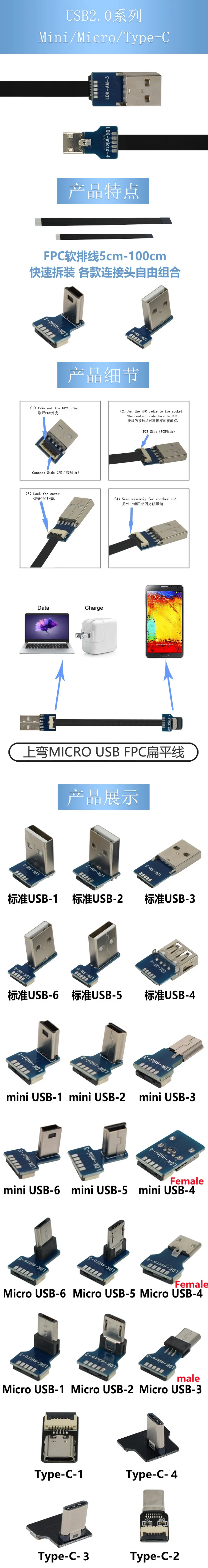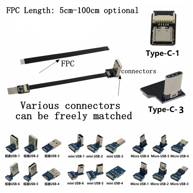 FPV 3.1 Type-c 90 degree Adapter 5cm-100cm FPC Micro USB extension