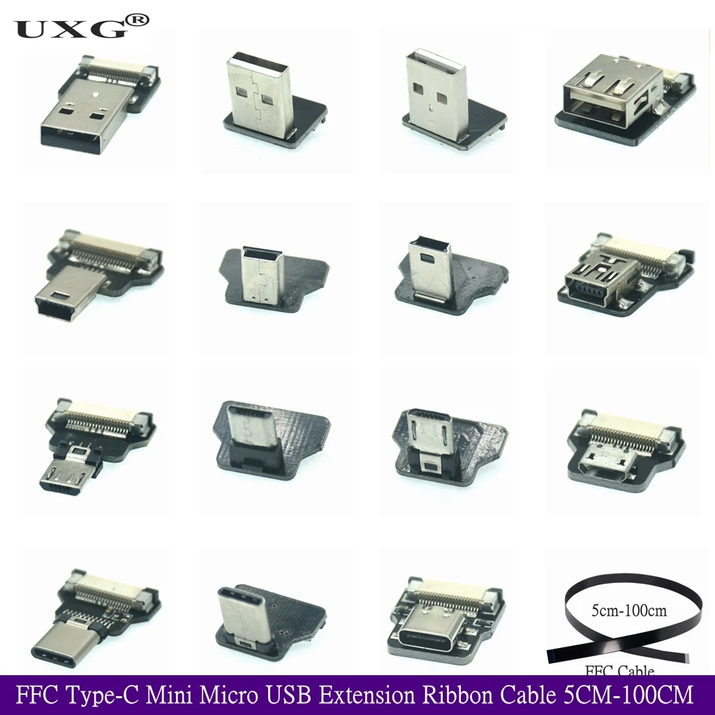 FPV 3,1 Tipo-c Adaptador de 90 grados 5cm-100cm FPC Micro USB extensión