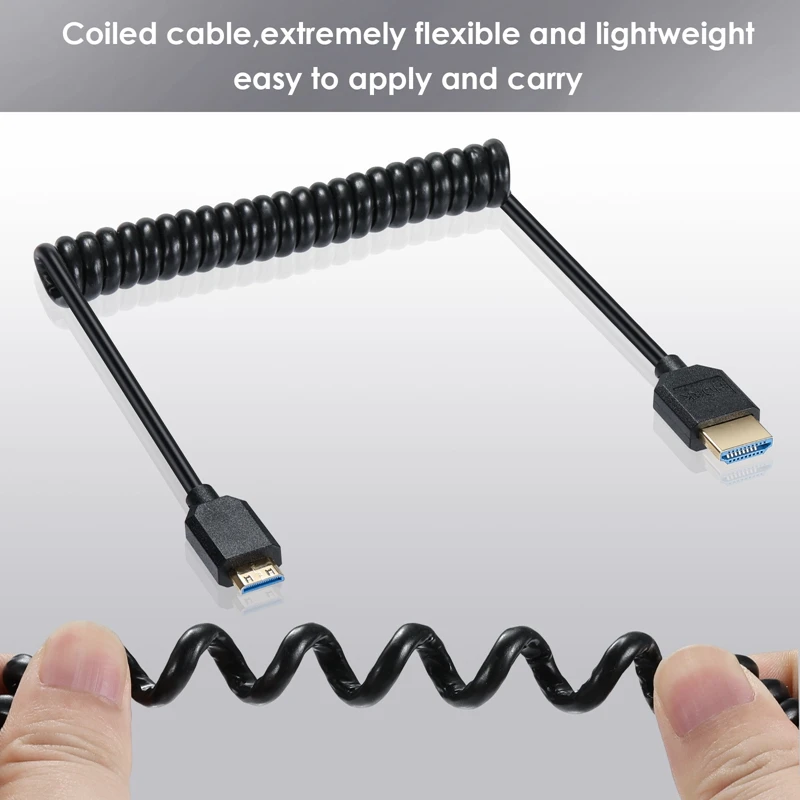 Cable telescópico de resorte ultrafino OD4.0mm cámara digital mini cable compatible con HDMI 2,1 versión HD cable 8k @ 60HZ HDMI HD cable de datos 1,2 metros;